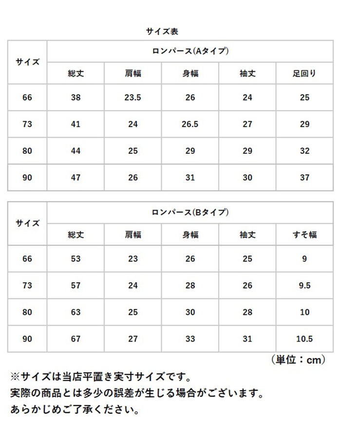 | サイズ | [ベビー] 【ロンパース(共通)】 ・66cm ・73cm ・80cm ・90cm 【帽子(共通)】 [頭回り]約40cm/[高さ]約15cm ※帽子のサイズは当店計測の実寸サイズです。ロンパースのサイズについて詳細は、商品画像の中にあるサイズ表をご覧くださいませ。 |