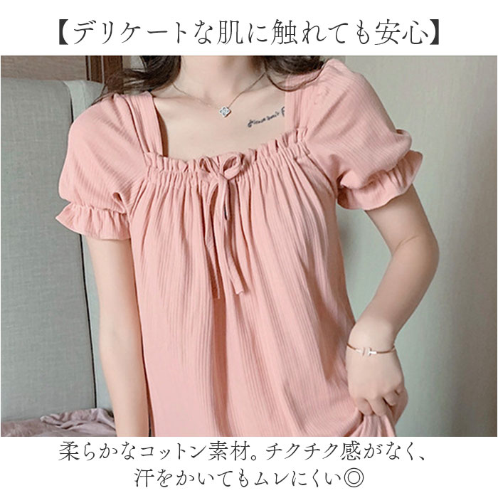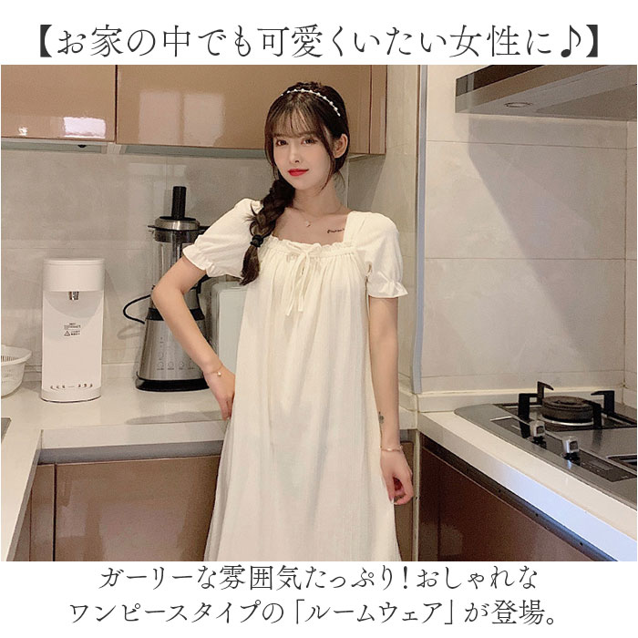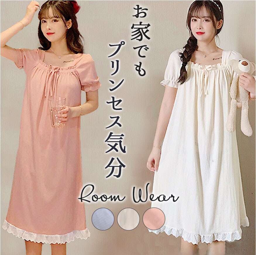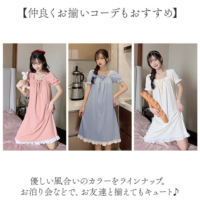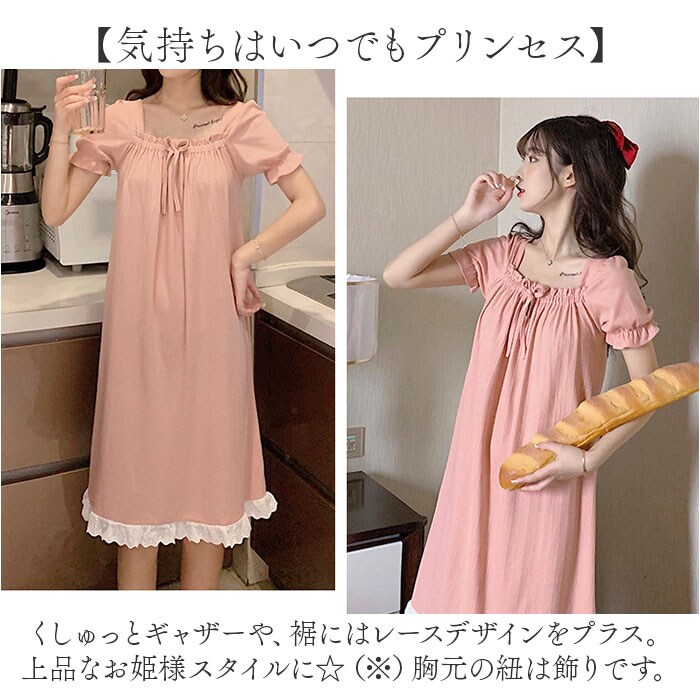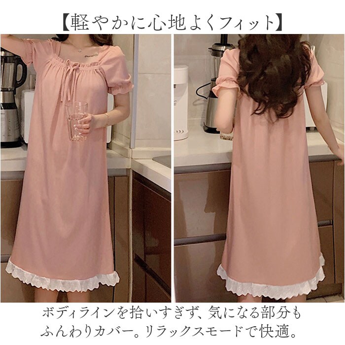 | 商品説明 | 【お家の中でも可愛くいたい女性に♪】ガーリーな雰囲気たっぷり!おしゃれなワンピースタイプの「ルームウェア」が登場。【気持ちはいつでもプリンセス】くしゅっとギャザーや、裾にはレースデザインをプラス。上品なお姫様スタイルに☆(※)胸元の紐は飾りです。【締め付けがなくノンストレス】デコルテ部分や袖にはゴム入り。頭から被るだけで着脱もラクチン。【軽やかに心地よくフィット】ボディラインを拾いすぎず、気になる部分もふんわりカバー。リラックスモードで快適。【デリケートな肌に触れても安心】柔らかなコットン素材。チクチク感がなく、汗をかいてもムレにくい◎【仲良くお揃いコーデもおすすめ】優しい風合いのカラーをラインナップ。お泊り会などで、お友達と揃えてもキュート♪ |