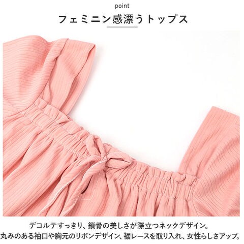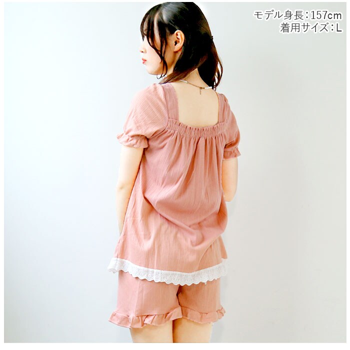 | 商品説明 | お家の中でも可愛くいたい女性にぴったり♪セットアップルームウェアが登場。【おしゃれで着心地もばっちり】くしゅっとフリルデザインをプラス♪着心地の良さと可愛さを兼ね備えた、半袖トップス&ショートパンツのセット。【リラックス感たっぷり】柔らかく優しい肌触り。程よいストレッチ性もあり、締めつけ感のない着用感◎【着脱ラクラク】上下ともにボタンなどがなく、サッと着脱OK。【フェミニン感漂うトップス】デコルテすっきり、鎖骨の美しさが際立つネックデザイン。丸みのある袖口や胸元のリボンデザイン、裾レースを取り入れ、女性らしさアップ。【涼しげなショートパンツ】汗ばむ季節もサラッと履けるショートパンツ。動きやすく、ウエストゴム仕様でとっても快適。【持ち運びにも便利】たたんでもかさばりにくく、旅行やお泊まり会にもおすすめ! |
