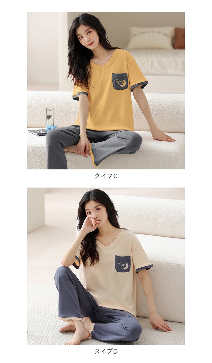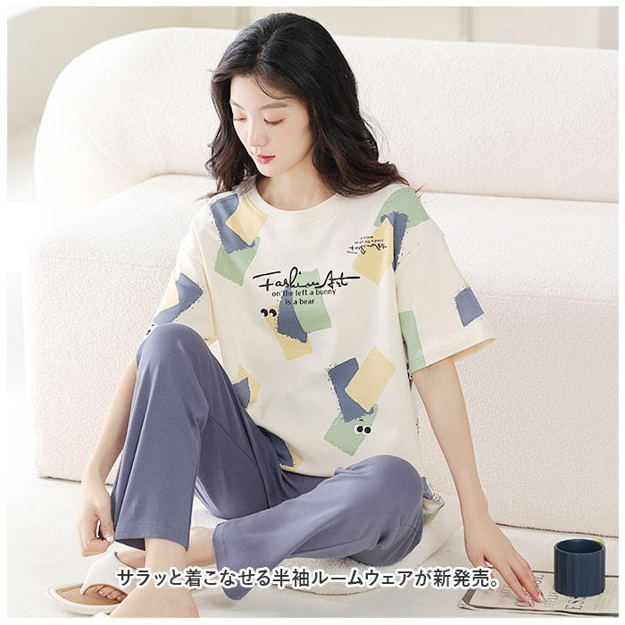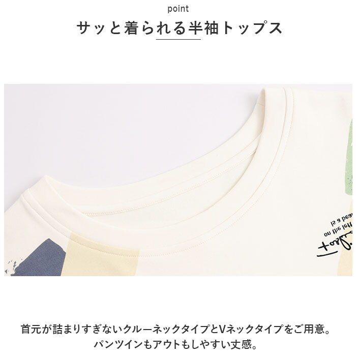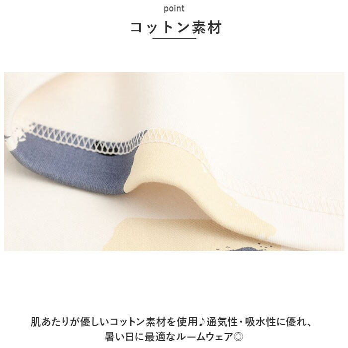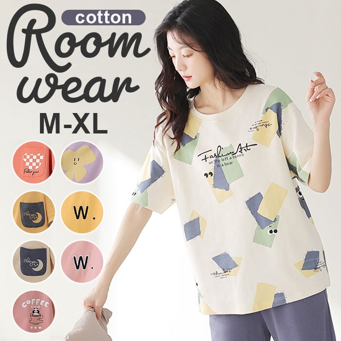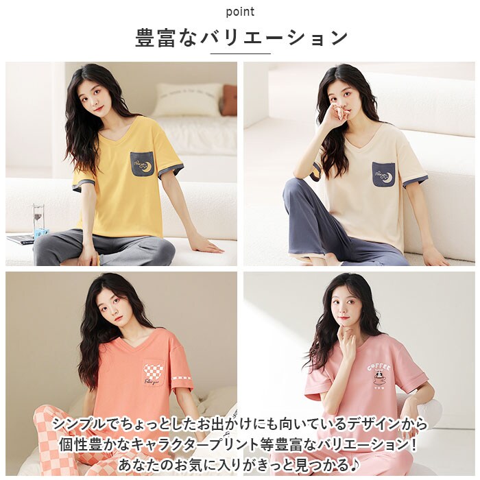 | 商品説明 | サラッと着こなせる半袖ルームウェアが新発売。【コットン素材】肌あたりが優しいコットン素材を使用♪通気性・吸水性に優れ、暑い日に最適なルームウェア◎とVネックタイプをご用意【サッと着られる半袖トップス】首元が詰まりすぎないクルーネックタイプとVネックタイプをご用意。パンツインもアウトもしやすい丈感。【ストレスフリーなパンツ】動きやすく締め付け感がないウエストゴム仕様!リラックスタイムはもちろん、睡眠時にも最適。【ポケット付き】パンツの両サイドにスマホなどが入るポケットを配置。【豊富なバリエーション】シンプルでちょっとしたお出かけにも向いているデザインから個性豊かなキャラクタープリント等豊富なバリエーション!あなたのお気に入りがきっと見つかる♪ |