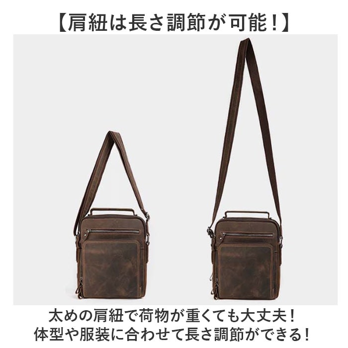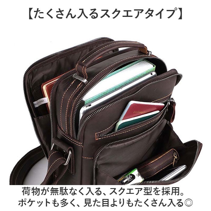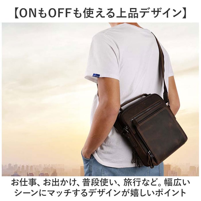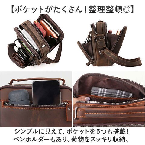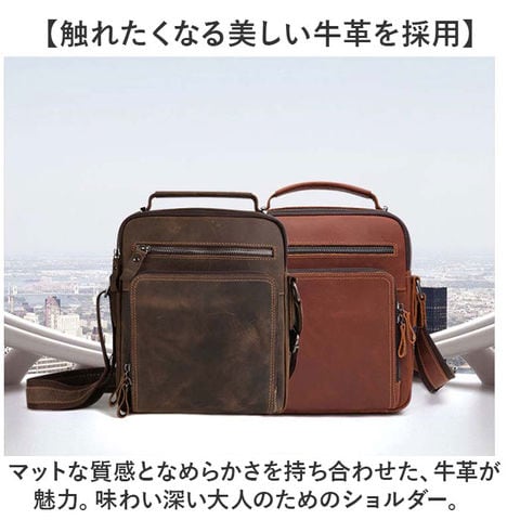 | 商品説明 | 【牛革素材を楽しむ大人の鞄♪】なめらかな肌触りが魅力の機能性アイテム。「ショルダーバッグ メンズバッグ」が登場。【触れたくなる美しい牛革を採用】マットな質感となめらかさを持ち合わせた、牛革が魅力。味わい深い大人のためのショルダー。【たくさん入るスクエアタイプ】荷物が無駄なく入る、スクエア型を採用。ポケットも多く、見た目よりもたくさん入る◎【ポケットがたくさん!整理整頓◎】シンプルに見えて、ポケットを5つも搭載!ペンホルダーもあり、荷物をスッキリ収納。【肩紐は長さ調節が可能!】太めの肩紐で荷物が重くても大丈夫!体型や服装に合わせて長さ調節ができる!【ONもOFFも使える上品デザイン】お仕事、お出かけ、普段使い、旅行など。幅広いシーンにマッチするデザインが嬉しいポイント【ポケット仕様】フロント:ファスナーポケット×2メイン収納:オープンポケット×1背面収納:ファスナーポケット×1、ペンホルダー×2背面:ファスナーポケット×1 |