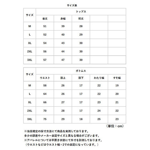 | サイズ | [レディース] ・Mサイズ ・Lサイズ ・XLサイズ ・2XLサイズ ・3XLサイズ ※サイズについて詳細は、商品画像の中にあるサイズ表をご覧くださいませ。 |