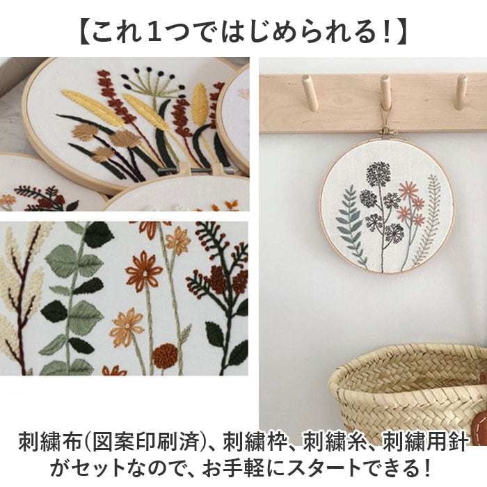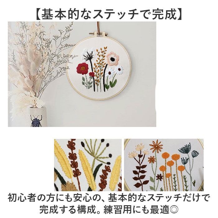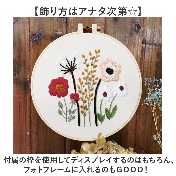 | 商品説明 | 【初心者の方にもオススメ☆】これ1つで素敵な作品が完成する!刺繍キット 花 が登場。【これ1つではじめられる!】刺繍布(図案印刷済)、刺繍枠、刺繍糸、刺繍用針がセットなので、お手軽にスタートできる!【基本的なステッチで完成】初心者の方にも安心の、基本的なステッチだけで完成する構成。練習用にも最適◎【日本語版の説明書つき】日本語表記の説明書には丁寧な図を記載。お子様から年配の方まで楽しめる!【飾り方はアナタ次第☆】付属の枠を使用してディスプレイするのはもちろん、フォトフレームに入れるのもGOOD!【ナチュラルフラワーのラインナップ】どのデザインもほっこりナチュラル♪お気に入りをチョイスして。 |