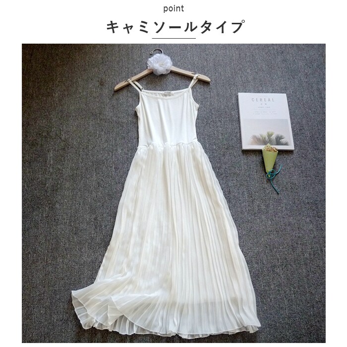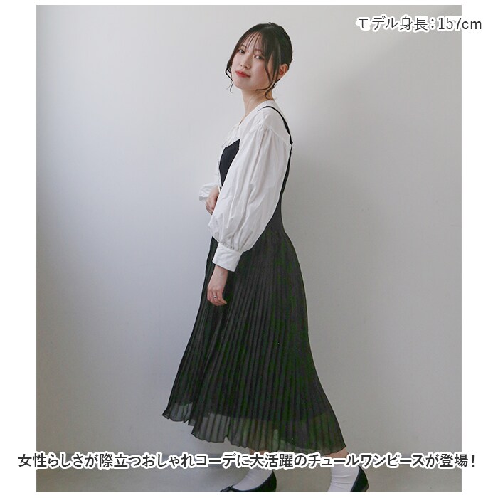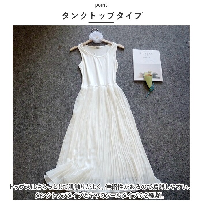 | 商品説明 | 女性らしさが際立つおしゃれコーデに大活躍のチュールワンピースが登場!【トップス】トップスはさらっとして肌触りがよく、伸縮性があるので着脱しやすい。タンクトップタイプとキャミソールタイプの2種類。【ウェストゴム】ウェストはゴムなので、自然にウエストがくびれるシルエットでスッキリ着こなせる。【透け感のあるプリーツスカート】プリーツの細い縦ラインで体型カバーもでき、歩くたびに揺れて繊細かつ華やかな印象に。一枚で着ても安心の裏地付き。【様々なシーンで活躍】カジュアルにも、きれいめコーデにも活躍!ジャケットを羽織って結婚式の二次会、パーティーなどのフォーマルな着こなしも◎ |