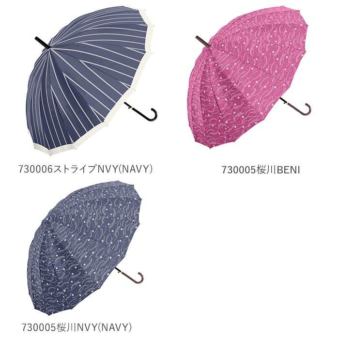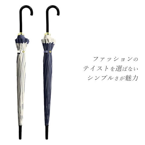 | 商品説明 | 軽量なグラスファイバー骨で、強い風にもよくしなって折れにくい!NaturalBasicの16本骨レディース傘。傘骨は、和傘のように風雅なシルエットが印象的な16本骨タイプ。丈夫でしっかりさせるのに、軽くて持ち運びが楽ちん。片手でサッと開きやすい、ジャンプ式。手荷物を持った時でもワンタッチで簡単開閉!ダークブラウンのレザー調持ち手ハンドルが高級感ある仕上がり。傘生地をまとめるバンドのカシメボタンやつゆ先にはゴールドのパーツを使用し、女性らしさがキラリと光るデザイン!ボーダーモダンストライプシリーズは、ファッションのテイストを選ばないシンプルさが魅力。川面を流れていく花びらの柄が美しい「桜川」もオススメ。 |