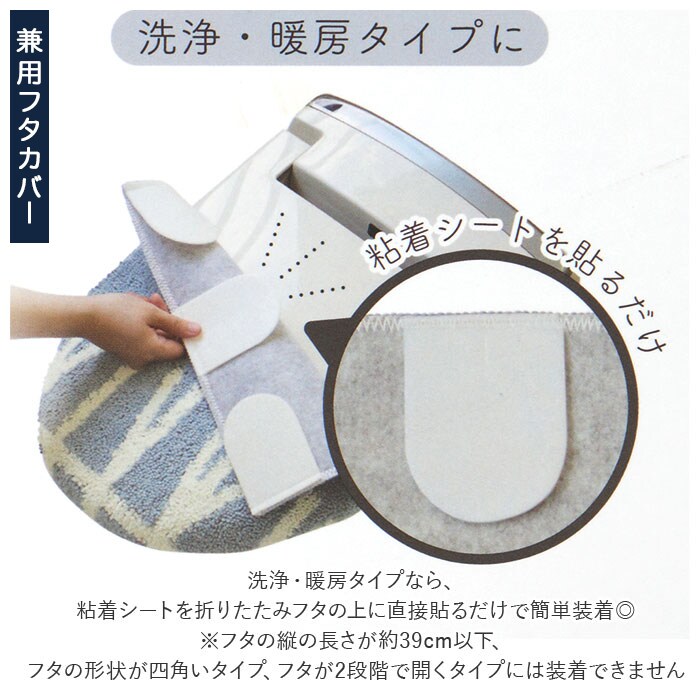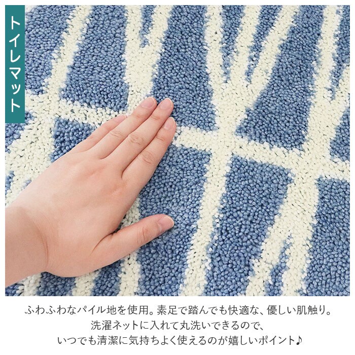 注意点・トイレマット、兼用フタカバー共通洗濯機 可ドライクリーニング 不可乾燥機 不可長時間日光にあたったり、摩擦、水漏れなどによる色落ちや色移りすることがあります。お取り扱いの際は、商品やパッケージなどに記載されている品質表示、アテンションタグ、ご使用上の注意事項などを必ずご確認下さい。本来の目的以外にはご使用にならないで下さい。カメラやモニターの性質により、画像と実物の色の違いがある場合がございますのでご理解願います。