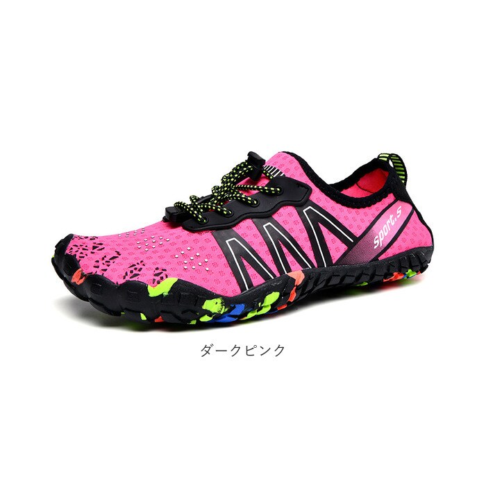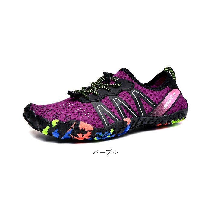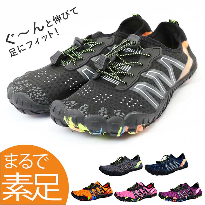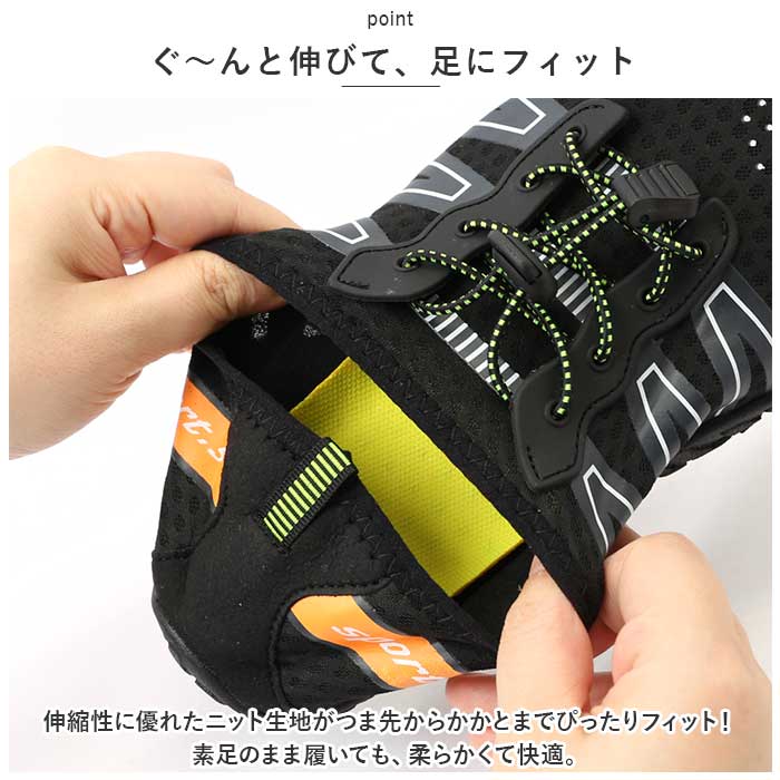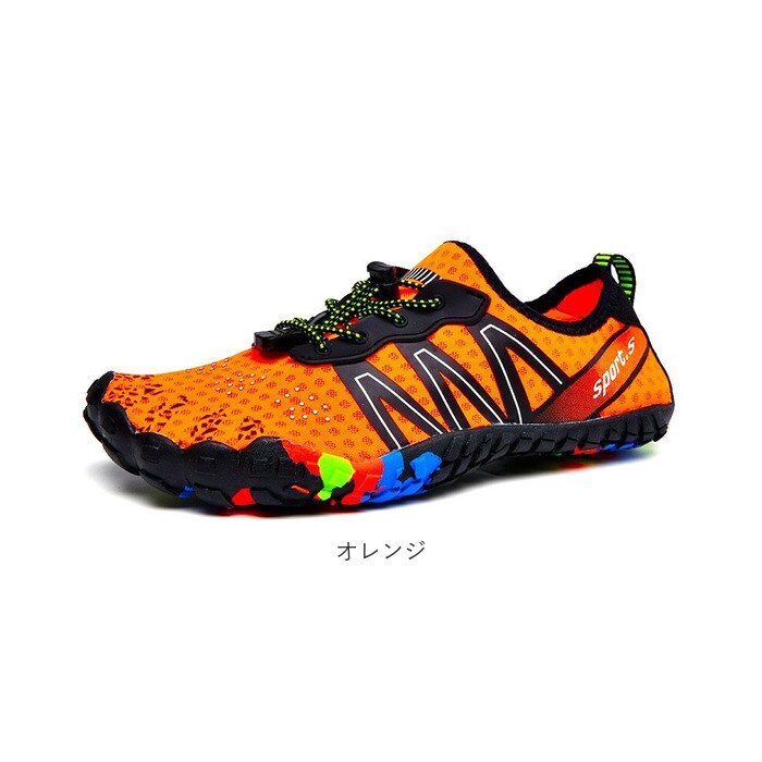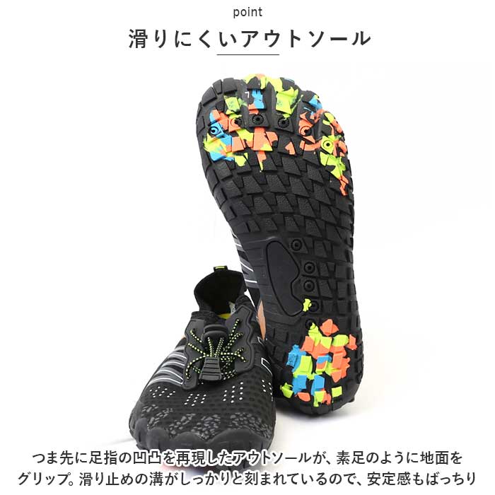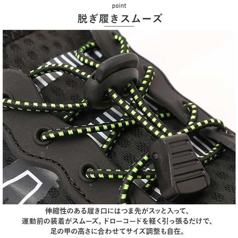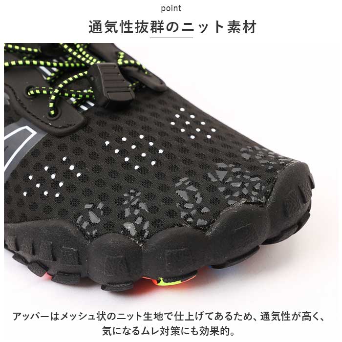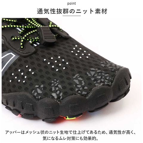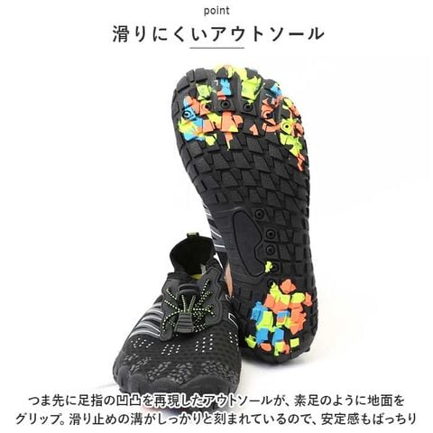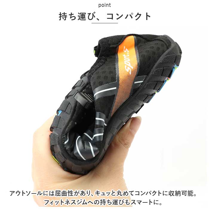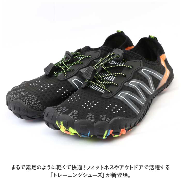 | 商品説明 | まるで素足のように軽くて快適!フィットネスやアウトドアで活躍する「トレーニングシューズ」が新登場。【ふわっと軽快な履き心地】片足約155gの軽量設計。履いていることを忘れてしまうほどの軽い履き心地で、軽快なフットワークを実現。(※25cmサイズの商品、片足分の重量です。)【ぐ~んと伸びて、足にフィット】伸縮性に優れたニット生地がつま先からかかとまでぴったりフィット!素足のまま履いても、柔らかくて快適。【通気性抜群のニット素材】アッパーはメッシュ状のニット生地で仕上げてあるため、通気性が高く、気になるムレ対策にも効果的。【衝撃吸収インソール】クッション性の高いインソールが足裏にかかる衝撃を優しく吸収し、運動時の足元をしっかりとサポート。【水陸でマルチに活躍】水の中にシューズのまま入っても、メッシュニットが水を通し、ソールの排水穴からも水が抜けるため、早く乾いて快適さをキープ。【脱ぎ履きスムーズ】伸縮性のある履き口にはつま先がスッと入って、運動前の装着がスムーズ。ドローコードを軽く引っ張るだけで、足の甲の高さに合わせてサイズ調整も自在。【滑りにくいアウトソール】つま先に足指の凹凸を再現したアウトソールが、素足のように地面をグリップ。滑り止めの溝がしっかりと刻まれているので、安定感もばっちり。【持ち運び、コンパクト】アウトソールには屈曲性があり、キュッと丸めてコンパクトに収納可能。フィットネスジムへの持ち運びもスマートに。【お手入れ簡単、いつでも清潔】カップインソールは取り外しができるので、手軽に水洗いができていつでも清潔。【スポーツやアウトドアに最適】ジムでのトレーニングや、ランニングなどのフィットネスにはもちろん、アウトドアや水辺のアクティビティーにも大活躍。 |