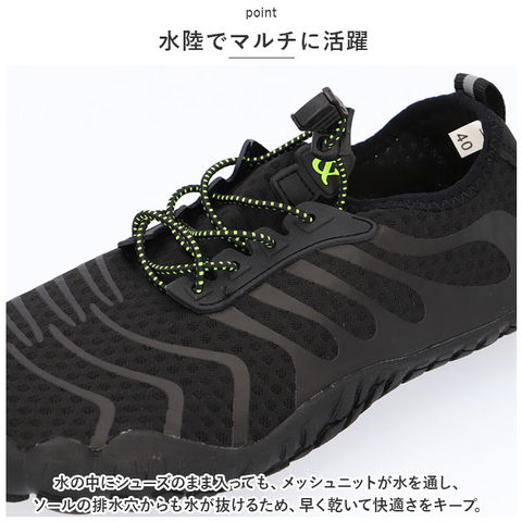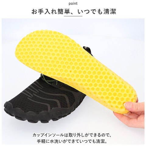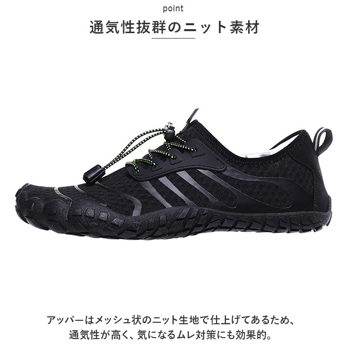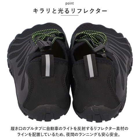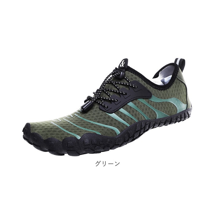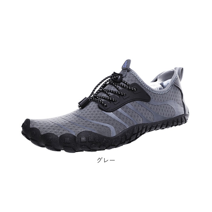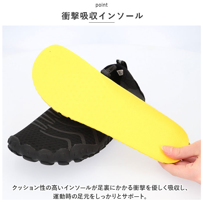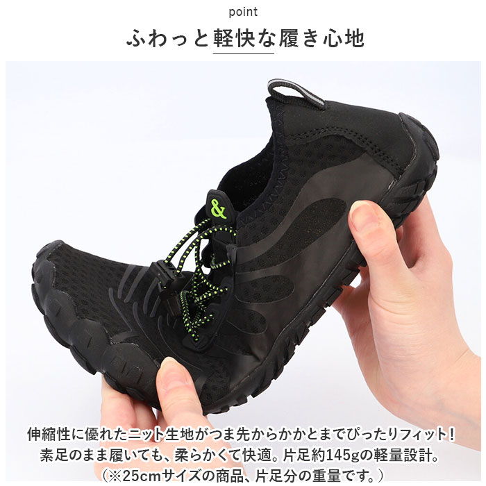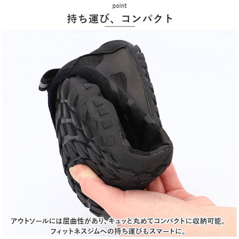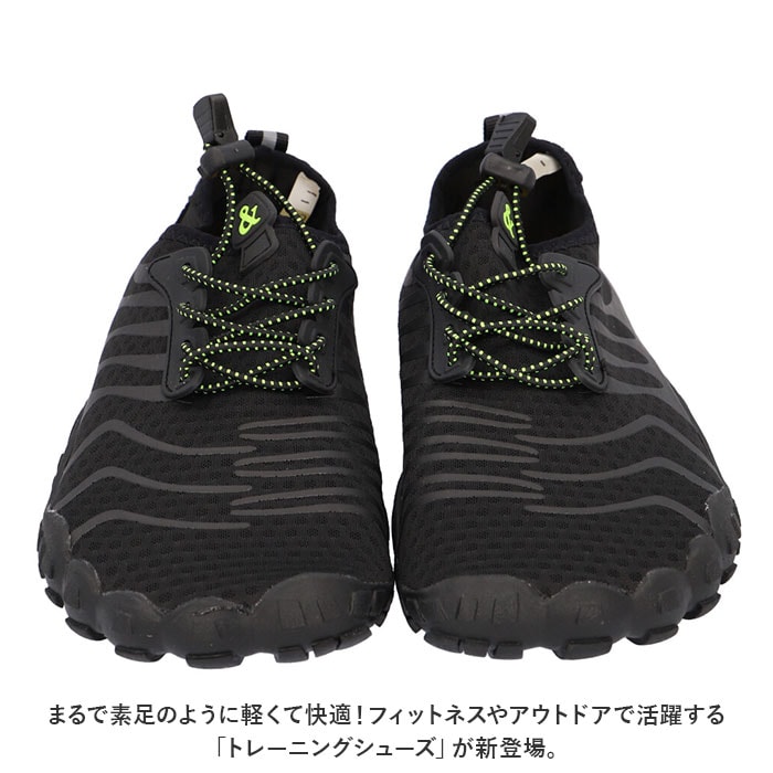 | 商品説明 | まるで素足のように軽くて快適!フィットネスやアウトドアで活躍する「トレーニングシューズ」が新登場。【ふわっと軽快な履き心地】片足約145gの軽量設計。履いていることを忘れてしまうほどの軽い履き心地で、軽快なフットワークを実現。(※25cmサイズの商品、片足分の重量です。)【ぐ~んと伸びて、足にフィット】伸縮性に優れたニット生地がつま先からかかとまでぴったりフィット!素足のまま履いても、柔らかくて快適。【通気性抜群のニット素材】アッパーはメッシュ状のニット生地で仕上げてあるため、通気性が高く、気になるムレ対策にも効果的。【衝撃吸収インソール】クッション性の高いインソールが足裏にかかる衝撃を優しく吸収し、運動時の足元をしっかりとサポート。【水陸でマルチに活躍】水の中にシューズのまま入っても、メッシュニットが水を通し、ソールの排水穴からも水が抜けるため、早く乾いて快適さをキープ。【脱ぎ履きスムーズ】伸縮性のある履き口にはつま先がスッと入って、運動前の装着がスムーズ。ドローコードを軽く引っ張るだけで、足の甲の高さに合わせてサイズ調整も自在。【滑りにくいアウトソール】つま先に足指の凹凸を再現したアウトソールが、素足のように地面をグリップ。滑り止めの溝がしっかりと刻まれているので、安定感もばっちり。【持ち運び、コンパクト】アウトソールには屈曲性があり、キュッと丸めてコンパクトに収納可能。フィットネスジムへの持ち運びもスマートに。【お手入れ簡単、いつでも清潔】カップインソールは取り外しができるので、手軽に水洗いができていつでも清潔。【キラリと光るリフレクター】履き口のプルタブに自動車のライトを反射するリフレクター素材のラインを配置しているため、夜間のランニングも安心安全。【スポーツやアウトドアに最適】ジムでのトレーニングや、ランニングなどのフィットネスにはもちろん、アウトドアや水辺のアクティビティーにも大活躍。 |