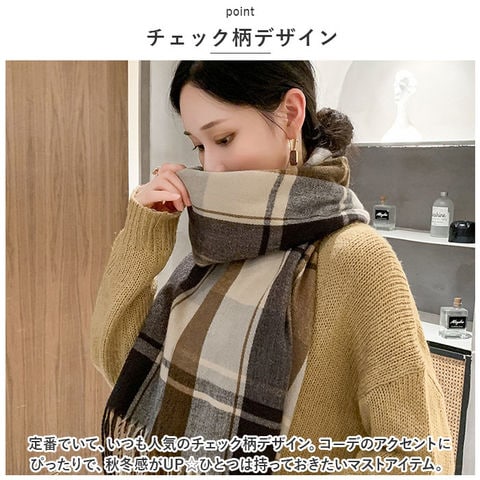 | 商品説明 | 定番のチェック柄で、コーデをワンランクアップ♪マフラーが登場。【チェック柄デザイン】定番でいて、いつも人気のチェック柄デザイン。コーデのアクセントにぴったりで、秋冬感がUP☆ひとつは持っておきたいマストアイテム。【絶妙くすみカラー】幅広いカラーバリエーションをご用意。どの色も絶妙なくすみカラーと配色で、チェック柄だけど子供っぽくならない印象。大人も持てるおしゃれさ。【グルっと巻くだけでOK】無造作に巻くだけで、こなれ感のある仕上がりに☆サラっと羽織りでエレガントに、グルっと2重巻きにしてカジュアル、ふわっと巻いてキレイめにも。使い方は無限大!【チクチクしない優しい肌心地】ポリエステル素材を使用していながら、ウールのようなしっとり優しい肌心地を実現。チクチクしにくいのも嬉しいポイント。【大判サイズ】身体をしっかり包み込む、大きめのサイズ。羽織り、マフラー、ブランケットと幅広く活躍。【ギフトとしての適性】年齢を問わず使えるアイテムなので、ギフトにもぴったりのアイテム。大切な方への贈り物としても喜ばれる。 |