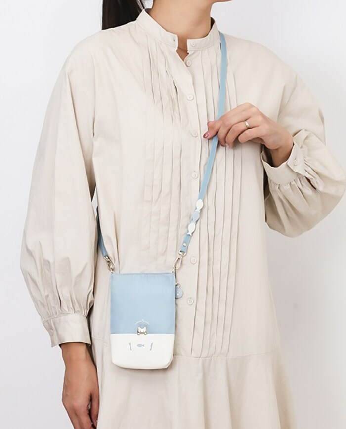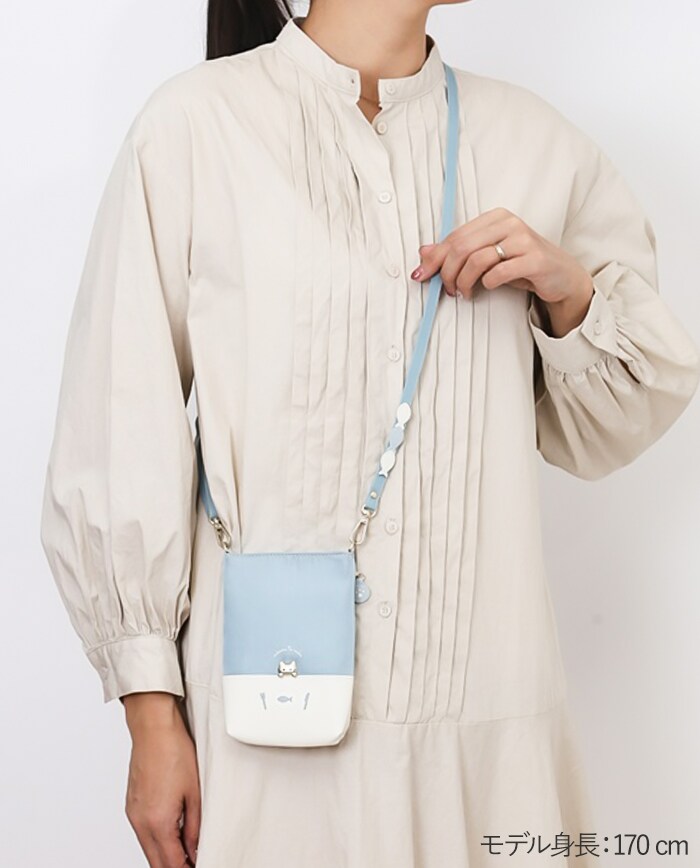 | 商品説明 | スマートフォンと小物を入れて、猫ちゃんと一緒に身軽にお出かけ。長さ調節機能可能のショルダーストラップ付き。 |