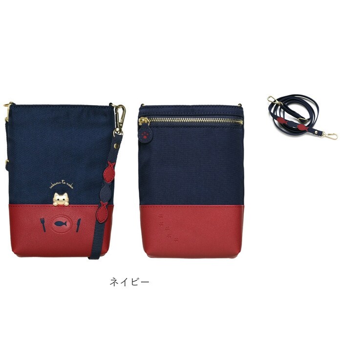 ショルダーストラップ付きスマホポーチ sakana to neko【ネイビー】