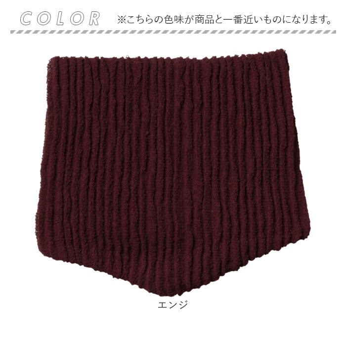 | 商品説明 | 【ふっくらあったか】冷たい風から首元をガードしてくれる、セラミック遠赤ネックウォーマー♪【東洋紡「セラムA」】アクリル繊維に遠赤外線を放射するセラミックスを練り込んだ素材で首回りを温めてくれる◎【ふんわり柔らか素材】ソフトで優しい肌触りで、デリケートな首回りも安心して使える心地よさ〇【優れた伸縮性】ふんわり編み上げた特殊編みでゆったり伸びるから、髪型もくずさずに着脱簡単! |