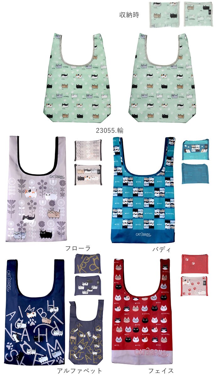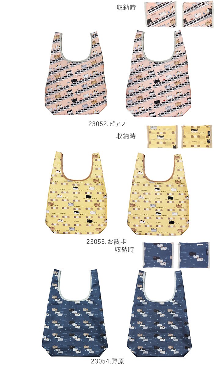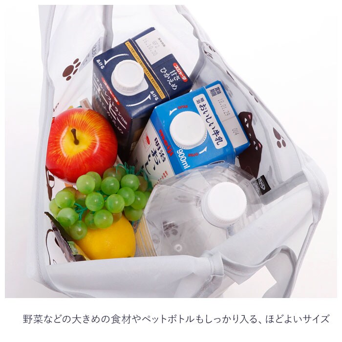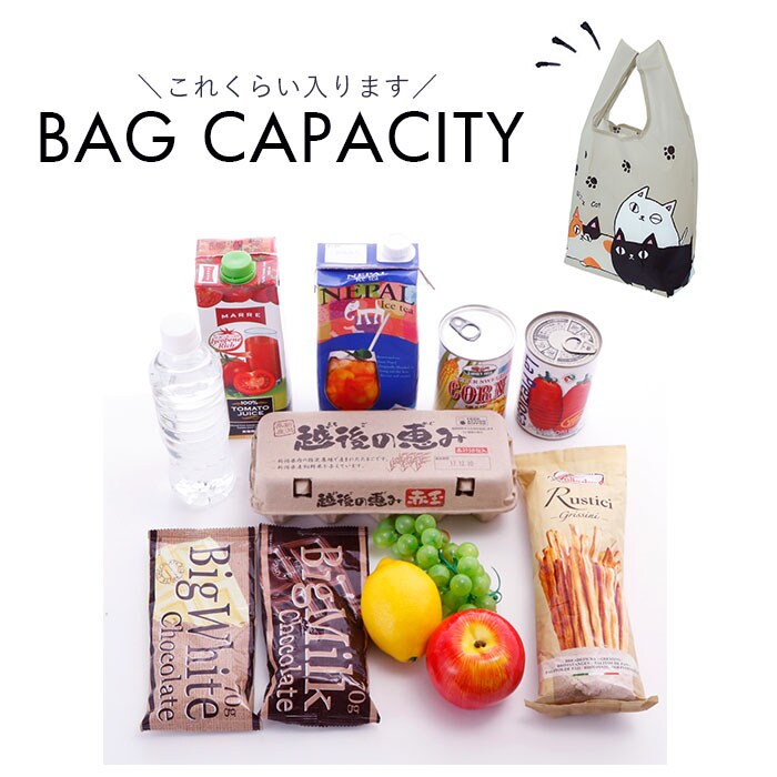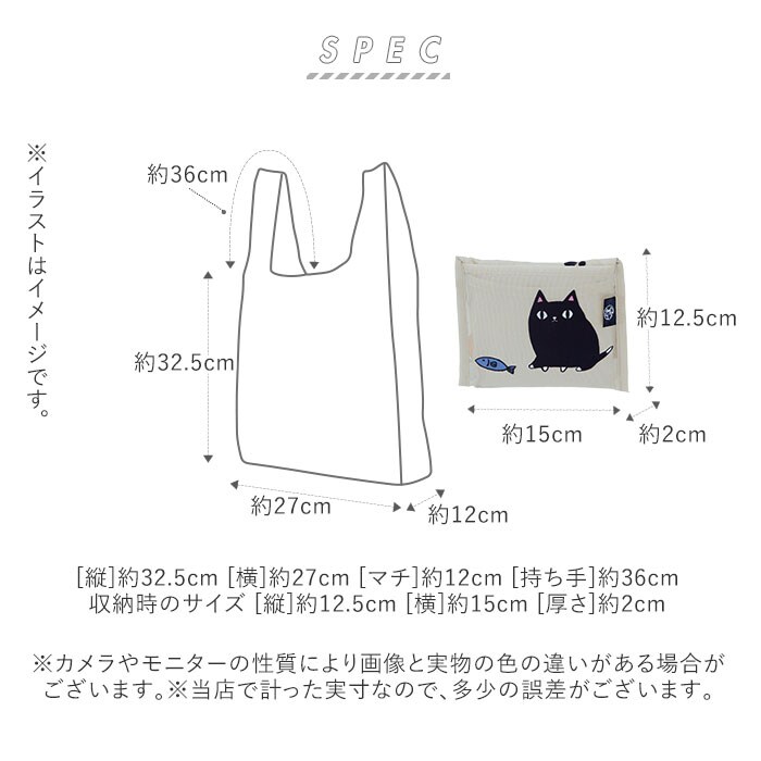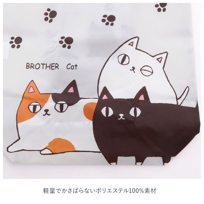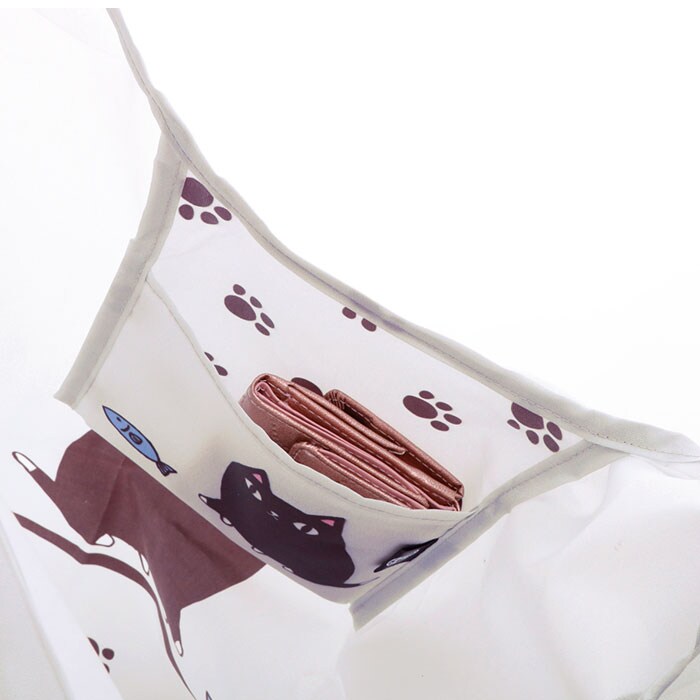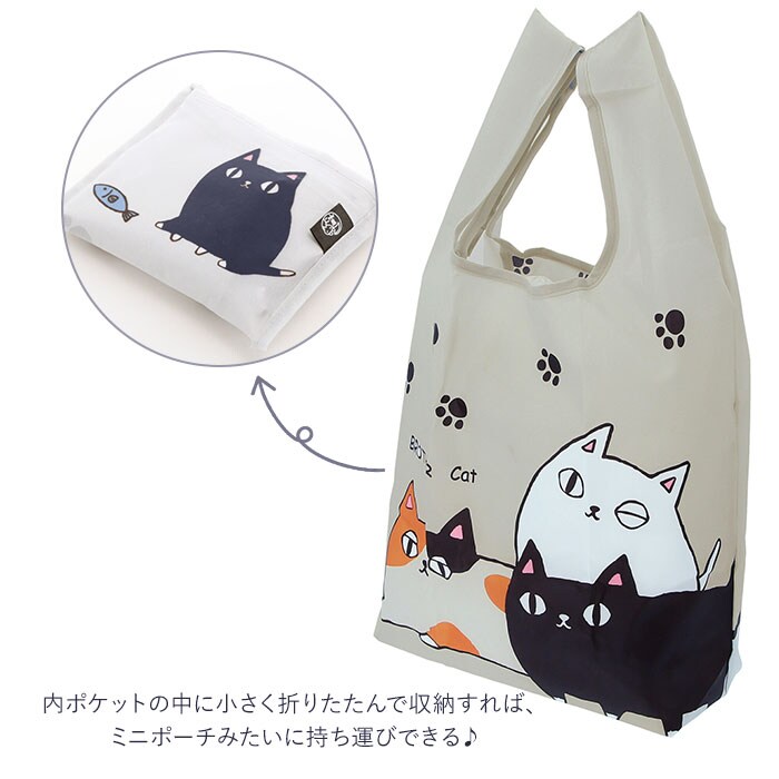 | 商品説明 | くろねこ、みけねこ、しろねこ、ずんぐりむっくりとした猫三匹のイラストが可愛い!人気の猫三兄弟に、コンパクトに持ち歩けるエコバッグが新登場!軽量でかさばらないポリエステル100%素材。内ポケットの中に小さく折りたたんで収納すれば、ミニポーチみたいに持ち運びできる♪コンパクト&スリムな見た目ながら、マチはたっぷり10cm!野菜などの大きめの食材やペットボトルもしっかり入る、ほどよいサイズ。持ち手ハンドルは幅が広めのデザイン。少し多めにお買い物しちゃったときも、荷物が手に食い込まず持ち運びラクラク。いつもの通勤用トートに入れておけば、仕事帰りでもコンビニやスーパーでサッと広げられて、エコにお買い物できる♪にくめない表情をしたお目々パッチリ猫三匹と、足あとやお魚のモチーフがとってもキュート!お気に入りの柄をチョイスしてね! |