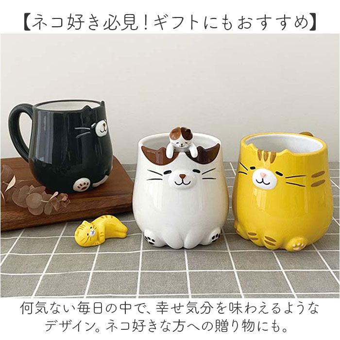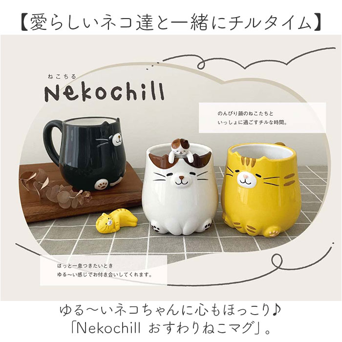 | 商品説明 | 【愛らしいネコ達と一緒にチルタイム】ゆる~いネコちゃんに心もほっこり♪「Nekochill おすわりねこマグ」。【ちょこんとお座りした姿がキュート】おすわり姿に可愛い肉球、くるんとしたしっぽのハンドルがたまらない☆【リラックスタイムのお供にぴったり】自宅やオフィスで、ホッと一息つきたい時に最適。しっかり入る容量約300ml。【ネコ好き必見!ギフトにもおすすめ】何気ない毎日の中で、幸せ気分を味わえるようなデザイン。ネコ好きな方への贈り物にも。 |
