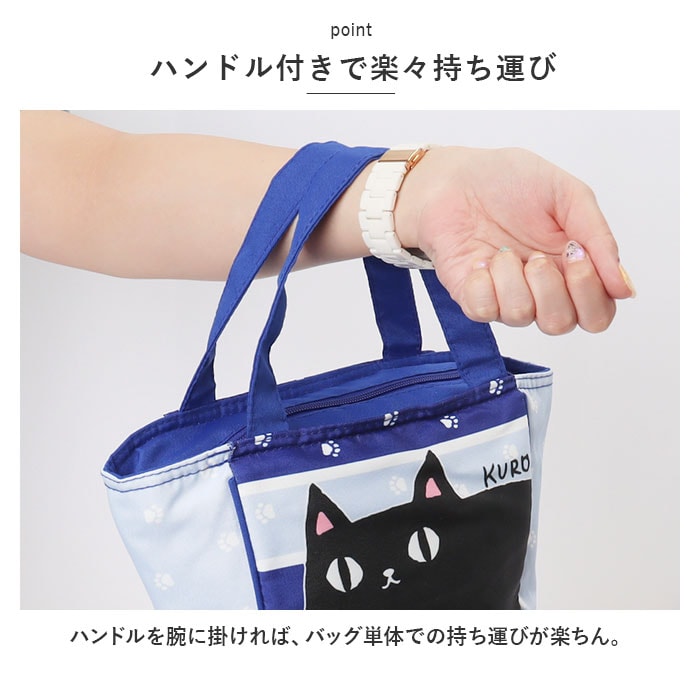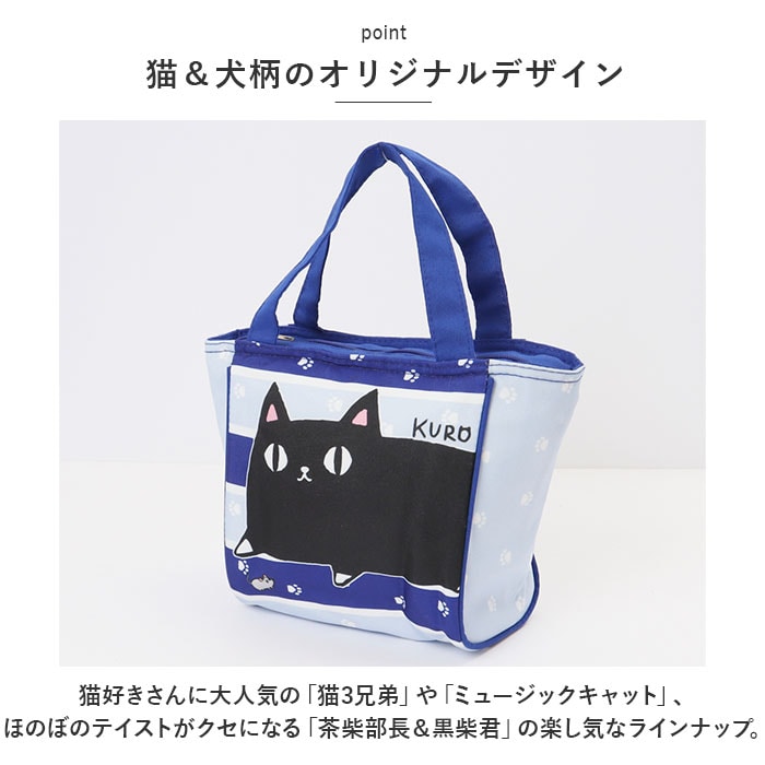 | 商品説明 | お弁当をひろげるたびに、ほっこり癒される♪アニマルデザインが可愛い「猫・犬柄ランチバッグ」が新登場。【猫&犬柄のオリジナルデザイン】・猫好きさんに大人気の「猫3兄弟」や「ミュージックキャット」、ほのぼのテイストがクセになる「茶柴部長&黒柴君」の楽し気なラインナップ。【COOL&HOT対応】内側をアルミ蒸着フィルムで仕上げた保冷・保温タイプだから、保冷剤を入れれば毎日のお弁当の持ち運びが安心。【しっかり閉じるファスナー仕様】お箸セットやおしぼりなどがこぼれる心配のない天ファスナー仕様。保冷剤の冷気もしっかり逃がさない♪【たっぷりマチ幅・深型設計】大きめお弁当箱がすっぽりと収納できるたっぷりマチ幅に設計し、育ち盛りのお子さまのランチにぴったり!500mlペットボトルなら立てて収納可能。【ハンドル付きで楽々持ち運び】ハンドルを腕に掛ければ、バッグ単体での持ち運びが楽ちん。ランチタイムが待ち遠しくなる!全国の猫好きさん・犬好きさん必携のゆるかわアイテム。 |