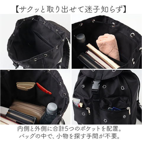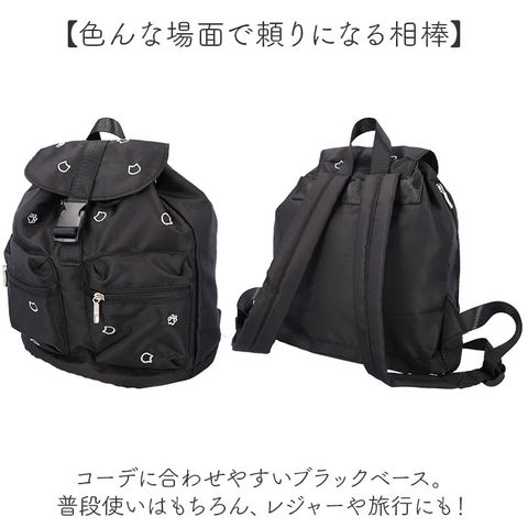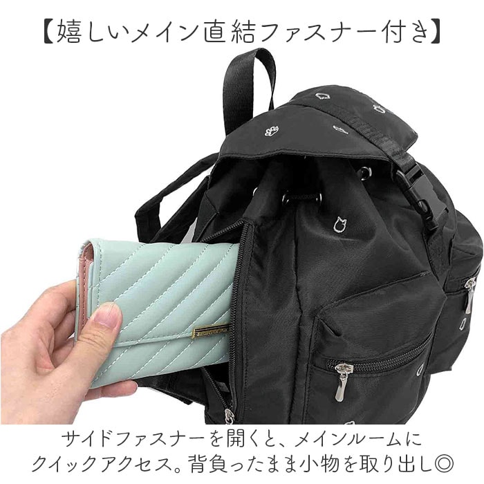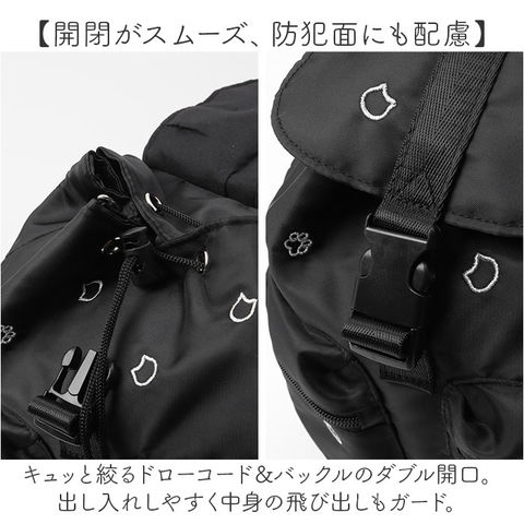 | 商品説明 | 【コーデに可愛いアクセントをプラス】上品な刺繍デザインが魅力◎おしゃれに持てる「猫のわ 刺繍フラップリュック」。【猫ちゃん好きな方におすすめ】光沢のあるカラー刺繍で表現された、猫のお顔や肉球。控えめに猫デザインをアピール♪【ハンズフリーで移動がラクラク】両手を自由に使えて、アクティブシーンにもおすすめ。軽やかな背負い心地でノンストレス。【開閉がスムーズ、防犯面にも配慮】キュッと絞るドローコード&バックルのダブル開口。出し入れしやすく中身の飛び出しもガード。【マストアイテムをひとまとめ】A5や500mlペットボトル、長財布等をIN。コンパクトに見えて、必要な物はしっかりと。【嬉しいメイン直結ファスナー付き】サイドファスナーを開くと、メインルームにクイックアクセス。背負ったまま小物を取り出し◎【サクッと取り出せて迷子知らず】内側と外側に合計5つのポケットを配置。バッグの中で、小物を探す手間が不要。【色んな場面で頼りになる相棒】コーデに合わせやすいブラックベース。普段使いはもちろん、レジャーや旅行にも!【お子さまから大人までエイジレス】小中学生の女の子から大人まで、幅広い年代の方が使える仕上がり。親子でシェアも☆【ポケット仕様】内側:ファスナーポケット×1、オープンポケット×2前面:ファスナーポケット×2 |