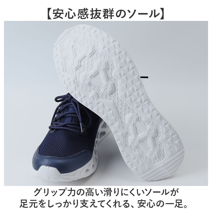 | 商品説明 | 【軽やかに、一日中快適】通勤通学からスポーツまで毎日活躍するスニーカー♪【軽量で歩きやすい】足への負担を抑えながら、スムーズな歩行をサポートしてくれる軽さが魅力◎【疲れにくいクッション構造】足をしっかりとサポートするクッション構造で、長距離歩行も疲れにくい〇【洗練されたスタイル】スポーティな雰囲気とカジュアルな使いやすさを両立した、スタイリッシュなシルエット!【蒸れにくく快適】通気性の良い素材により、長時間履いても足元快適に過ごせる。【安心感抜群のソール】グリップ力の高い滑りにくいソールが足元をしっかり支えてくれる、安心の一足。【お手入れ簡単】カップインソールは取り外しができるので、手軽に水洗いができていつでも清潔をキープ。 |