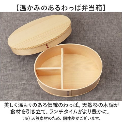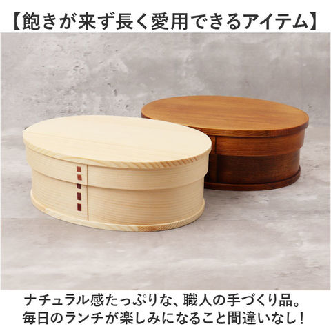 | 商品説明 | 【いつものランチをもっと美味しく♪】見栄えも美味しさもアップ!こだわりの天然杉を使った「曲げわっぱ 一段弁当箱 700ml」【温かみのあるわっぱ弁当箱】美しく温もりのある伝統のわっぱ。天然杉の木調が食材を引き立て、ランチタイムがより豊かに。(※)天然素材のため、個体差がございます。【時間が経ってもごはんが美味しい】木の調湿作用でご飯がベチャつかない!冷めても美味しくいただけるのが魅力。【表面塗装済みで毎日使いに最適】ナチュラルはウレタン塗装、漆は漆塗装を。素材の美しさはそのままに、耐久性がアップ。【しっかり入って使い勝手も抜群】屋外でも片手で持って食べやすい1段タイプ。深さのある容量700mlながら、本体は軽やか。【T字仕切りで盛り付けをキープ】おかずが片寄りにくいT字の仕切り付き。ごはんにおかずの色や味が移るのを防止。【持ち運びに便利なランチベルト】お弁当箱をホールドするランチベルトが付属。うっかりフタが開いてしまう心配不要。【飽きが来ず長く愛用できるアイテム】ナチュラル感たっぷりな、職人の手づくり品。毎日のランチが楽しみになること間違いなし! |