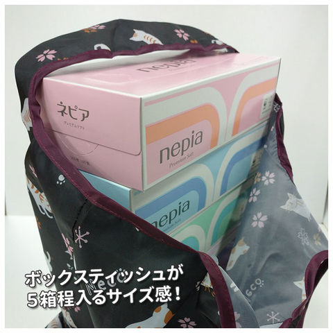 | 商品説明 | 肩にかけて重たい荷物も楽に運べる♪猫のイラストが特徴の可愛いエコバッグ!日常のお買い物に便利な大きさ、ボックスティッシュが5箱程入る〇くるくる丸めてゴムで留めれば、コンパクトに折りたためてメインバッグに入れても邪魔にならない。お世話になった方へのプチギフトにおすすめの可愛いデザイン♪ |