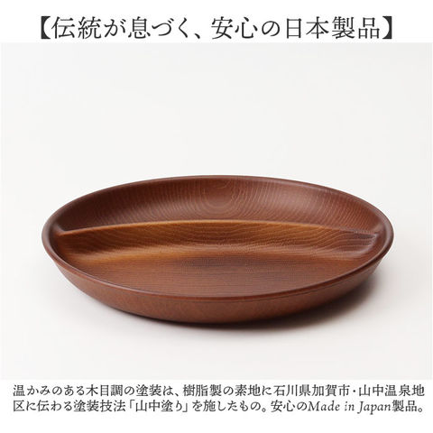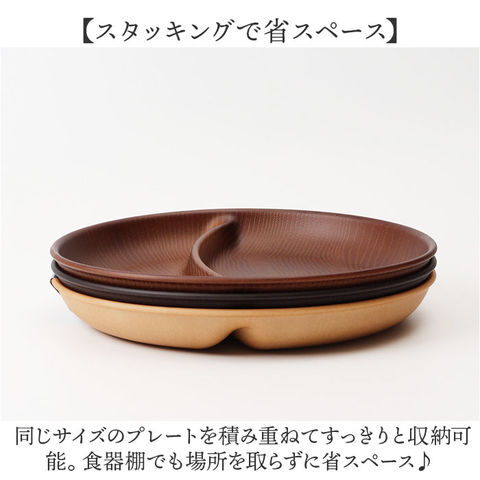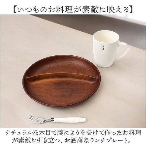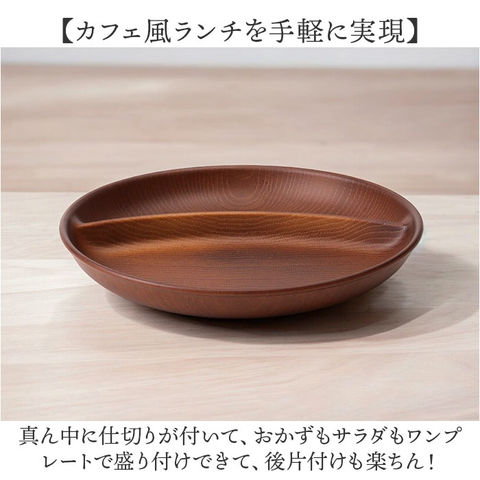 | 商品説明 | 【手軽におうちでカフェごはん♪】温かみのある木目の風合いで食卓が華やぐ「NH home 木目ワンプレート 24cm」が新登場!【いつものお料理が素敵に映える】ナチュラルな木目で腕によりを掛けて作ったお料理が素敵に引き立つ、お洒落なランチプレート。【カフェ風ランチを手軽に実現】真ん中に仕切りが付いて、おかずもサラダもワンプレートで盛り付けできて、後片付けも楽ちん!【スープやソースが混ざらない♪】2つの仕切りには深さがあり、カレーやスープハンバーグなど汁気のあるおかずもキレイに盛れる♪【汚れが落ちやすく、水切れスムーズ】防汚性・はっ水性に優れた内面クリーンコート加工で、毎日の家事やお手入れの手間がグっと楽に。【電子レンジ・食洗器の使用OK!】プレート素地は耐熱温度140度のPET・ABS樹脂素材。電子レンジでの温め直しや食洗機にも対応!【軽くて、丈夫で、割れにくい。】ふわっと軽く持ち運べて、落としても割れにくい丈夫さも魅力。キャンプやアウトドアでも大活躍。【スタッキングで省スペース】同じサイズのプレートを積み重ねてすっきりと収納可能。食器棚でも場所を取らずに省スペース♪【食卓を明るく彩るカラーリング】ダークブラウンの落ち着いた木目の表情と、北欧カラーの優しい組み合わせが素敵なアクセントに。【伝統が息づく、安心の日本製品】温かみのある木目調の塗装は、樹脂製の素地に石川県加賀市・山中温泉地区に伝わる塗装技法「山中塗り」を施したもの。安心のMade in Japan製品。【About NH home シリーズ】・「NH home」は、ナチュラルなカフェテイストのルックスに、手軽に使える便利な機能性をプラス!毎日の食卓を素敵に彩るテーブルウェアシリーズ。 |