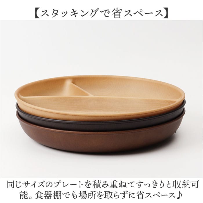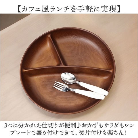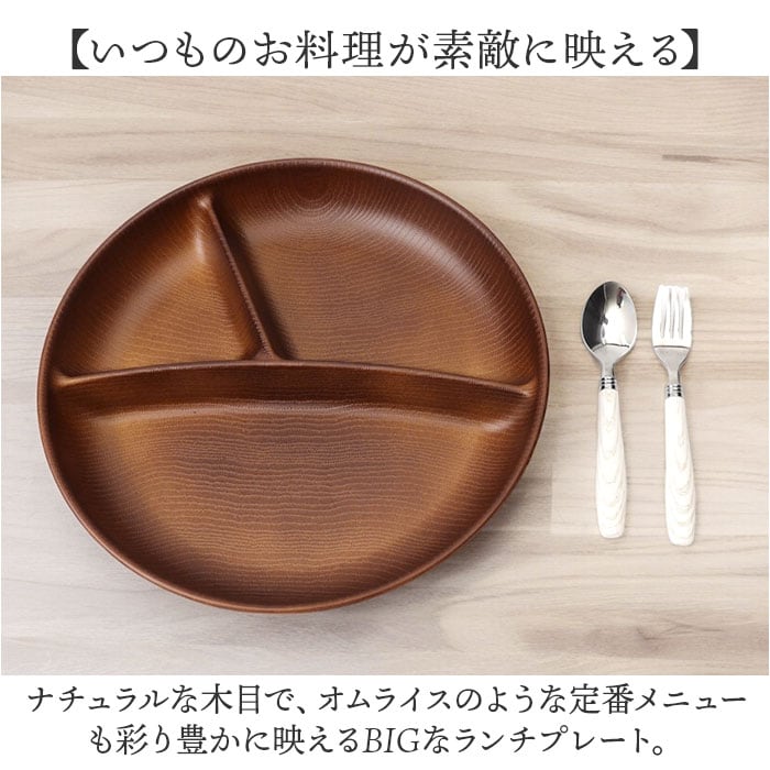 | 商品説明 | 【手軽におうちでカフェごはん♪】温かみのある木目の風合いで食卓がパッと華やぐ「NH home 木目ワンプレート BIG」が新登場!【いつものお料理が素敵に映える】ナチュラルな木目で、オムライスのような定番メニューも彩り豊かに映えるBIGなランチプレート。【カフェ風ランチを手軽に実現】3つに分かれた仕切りが便利♪おかずもサラダもワンプレートで盛り付けできて、後片付けも楽ちん!【スープやソースが混ざらない♪】3つの仕切りには深さがあり、カレーやスープハンバーグなど汁気のあるおかずもキレイに盛れる♪【汚れが落ちやすく、水切れスムーズ】防汚性・はっ水性に優れた内面クリーンコート加工で、毎日の家事やお手入れの手間がグっと楽に。【電子レンジ・食洗器の使用OK!】プレート素地は耐熱温度140度のPET・ABS樹脂素材。電子レンジでの温め直しや食洗機にも対応!【軽くて、丈夫で、割れにくい。】ふわっと軽く持ち運べて、落としても割れにくい丈夫さも魅力。キャンプやアウトドアでも大活躍。【スタッキングで省スペース】同じサイズのプレートを積み重ねてすっきりと収納可能。食器棚でも場所を取らずに省スペース♪【伝統が息づく、安心の日本製品】温かみのある木目調の塗装は、樹脂製の素地に石川県加賀市・山中温泉地区に伝わる塗装技法「山中塗り」を施したもの。安心のMade in Japan製品。【About NH home シリーズ】・「NH home」は、ナチュラルなカフェテイストのルックスに、手軽に使える便利な機能性をプラス!毎日の食卓を素敵に彩るテーブルウェアシリーズ。 |