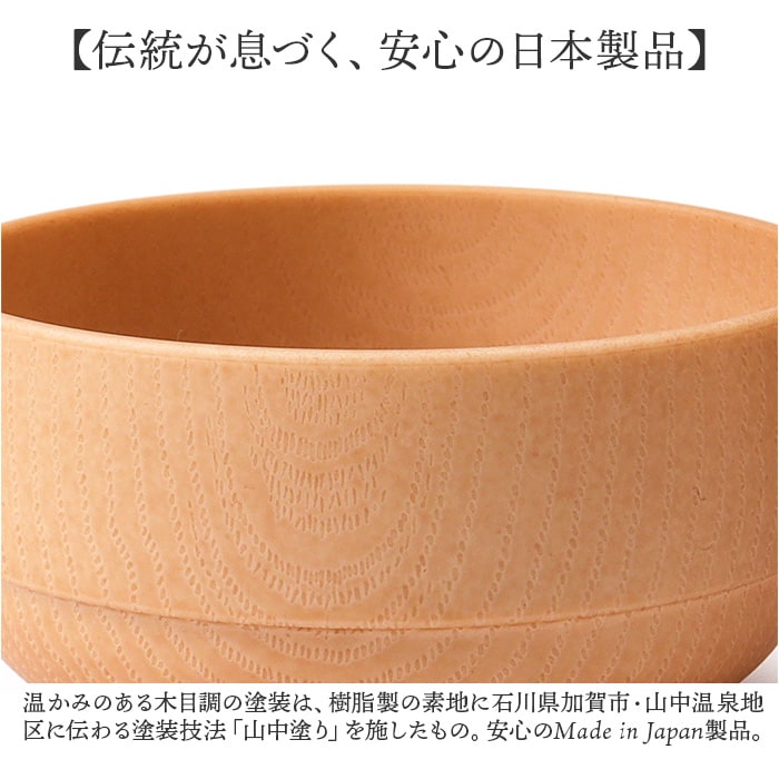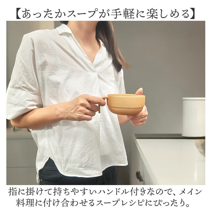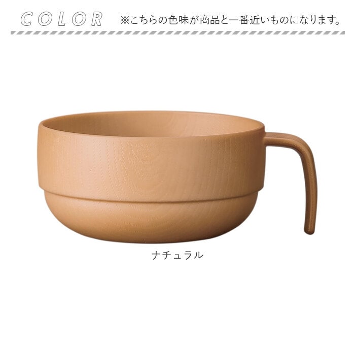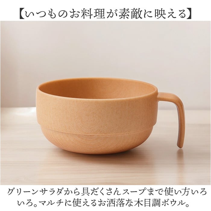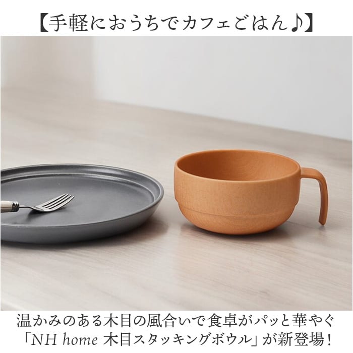 | 商品説明 | 【手軽におうちでカフェごはん♪】温かみのある木目の風合いで食卓がパッと華やぐ「NH home 木目スタッキングボウル」が新登場!【いつものお料理が素敵に映える】グリーンサラダから具だくさんスープまで使い方いろいろ。マルチに使えるお洒落な木目調ボウル。【あったかスープが手軽に楽しめる】指に掛けて持ちやすいハンドル付きなので、メイン料理に付け合わせるスープレシピにぴったり。【ちょこっと贅沢なひとときを演出】お子さまの大好きなスウィーツやフルーツを盛り付けるためのデザートボウルにもちょうどいい♪【汚れが落ちやすく、水切れスムーズ】防汚性・はっ水性に優れた内面クリーンコート加工で、毎日の家事やお手入れ手間がグっと楽に。【電子レンジ・食洗器の使用OK!】プレート素地は耐熱温度140度のPET・ABS樹脂素材。電子レンジでの温め直しや食洗機にも対応!【軽くて、丈夫で、割れにくい。】ふわっと軽く持ち運べて、落としても割れにくい丈夫さも魅力。キャンプやアウトドアでも大活躍。【スタッキングで省スペース】器の外側にわずかな段差を設けることで、カチッと重ねて省スペースに収納できるように設計。【伝統が息づく、安心の日本製品】温かみのある木目調の塗装は、樹脂製の素地に石川県加賀市・山中温泉地区に伝わる塗装技法「山中塗り」を施したもの。安心のMade in Japan製品。【About NH home シリーズ】・「NH home」は、ナチュラルなカフェテイストのルックスに、手軽に使える便利な機能性をプラス!毎日の食卓を素敵に彩るテーブルウェアシリーズ。 |