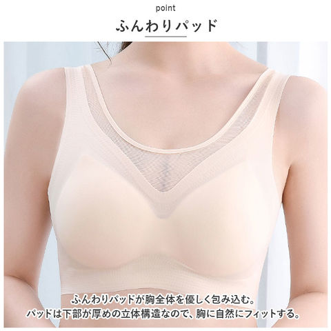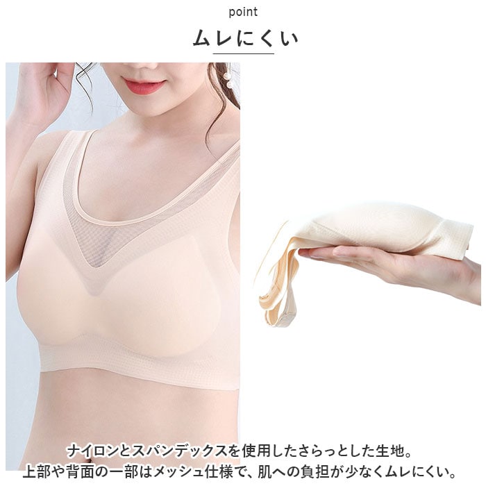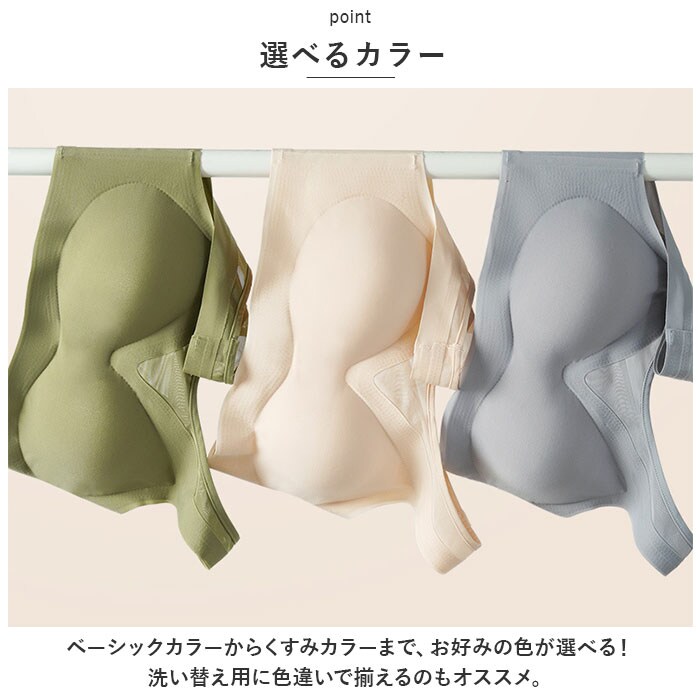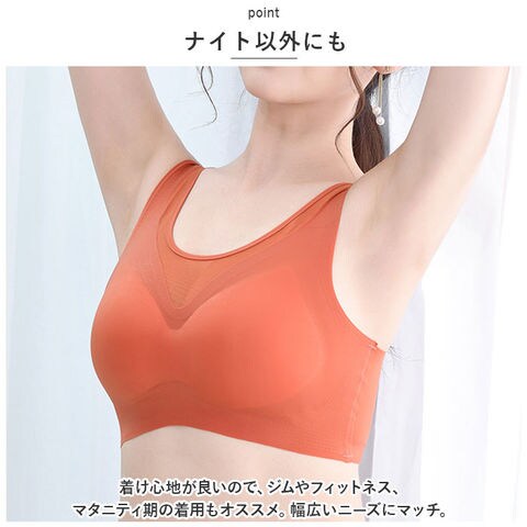 | 商品説明 | ノンワイヤーで楽ちん♪寝ている間のバストケアに。「ナイトブラ」が登場。【ノンワイヤー仕様】楽ちんな着け心地が魅力のノンワイヤー仕様。ホックなしのスポブラタイプなので、寝ている間も快適◎リラックスタイムにぴったり。【ふんわりパッド】ふんわりパッドが胸全体を優しく包み込む。パッドは下部が厚めの立体構造なので、胸に自然にフィットする。【食い込みにくい】ストラップは幅広なので肩への食い込みもしにくく、リラックスタイムを邪魔しない。【ムレにくい】ナイロンとスパンデックスを使用したさらっとした生地。上部や背面の一部はメッシュ仕様で、肌への負担が少なくムレにくい。【ナイト以外にも】着け心地が良いので、ジムやフィットネス、マタニティ期の着用もオススメ。幅広いニーズにマッチ。【選べるカラー】ベーシックカラーからくすみカラーまで、お好みの色が選べる!洗い替え用に色違いで揃えるのもオススメ。 |
