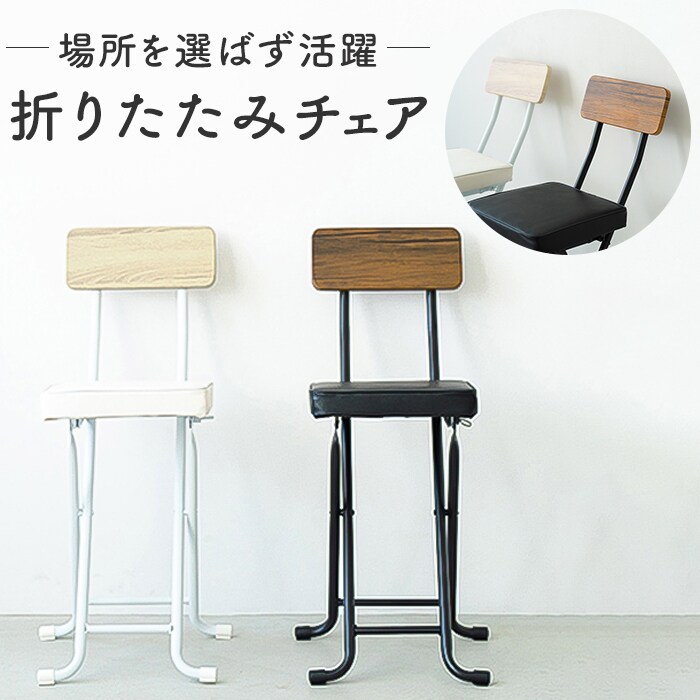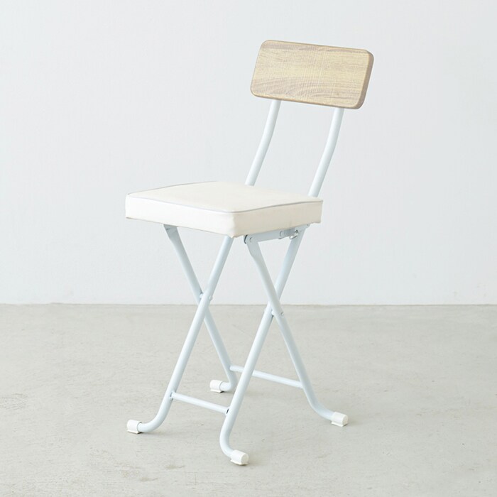 | 商品説明 | 場所を選ばずいろいろなシーンで活躍する折りたたみチェア。温かみを感じるヴィンテージ木目調の背もたれがアクセント。座面は厚みのある四角いクッション、背もたれに合わせたデザイン。スチール脚は艶なしの粉体塗装仕上げ、上品な空間を演出。使わない時はサッと折りたたみできてコンパクトに収納。 |