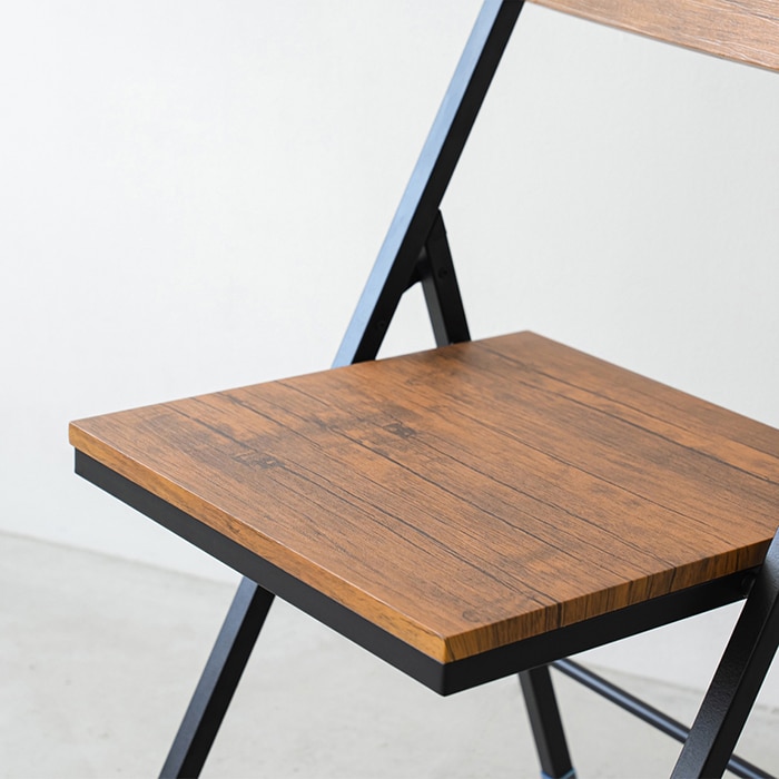 | 商品説明 | 温かみを感じるヴィンテージ木目調の座面と背もたれがアクセント。スクエアタイプですっきりスマートなデザイン。汚れてもお手入れしやすく普段使いに最適。収納に便利な折りたたみ式。 |