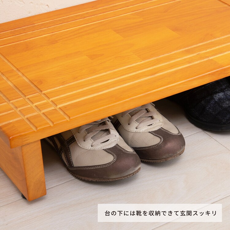 | 商品説明 | 玄関の段差軽減。昇り降りをサポート。素足でも足当たりのよい天然木ラバーウッド仕様下のスペースは靴の収納可能。床面に合わせて高さ調節できるアジャスター付き。 |
