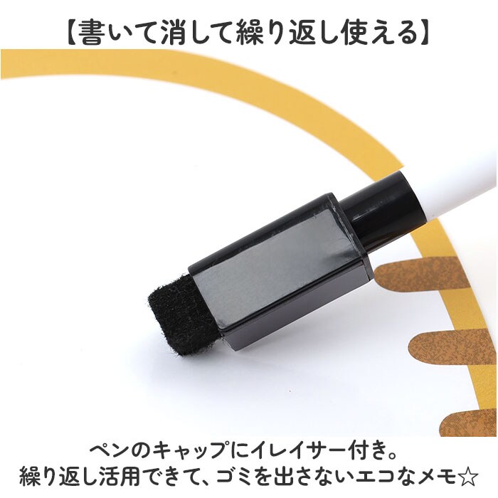 | 商品説明 | 【ちょっとしたメモ書きに便利】忘れないようにメモしたり、メッセージを残せる♪「マグネットメモ ペン付き」。【書いて消して繰り返し使える】ペンのキャップにイレイサー付き。繰り返し活用できて、ゴミを出さないエコなメモ☆【冷蔵庫などにペタッと貼り付け】背面全面マグネット仕様のメッセージボード。冷蔵庫や金属部分に簡単貼り付け。【空間にアクセントをプラス】ワンちゃんやネコちゃんの愛らしい姿に、心もほっこり♪空間のワンポイントに。 |