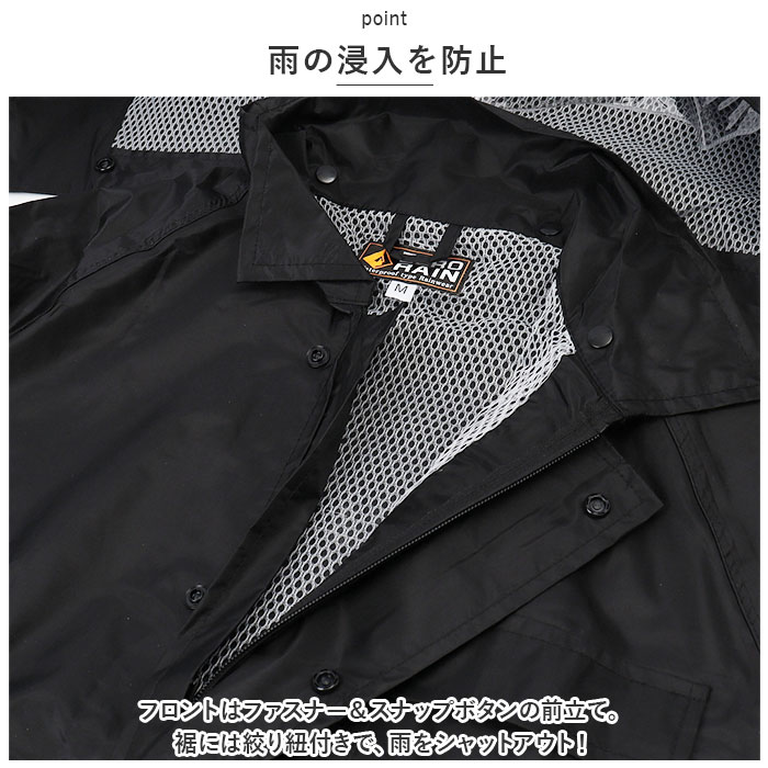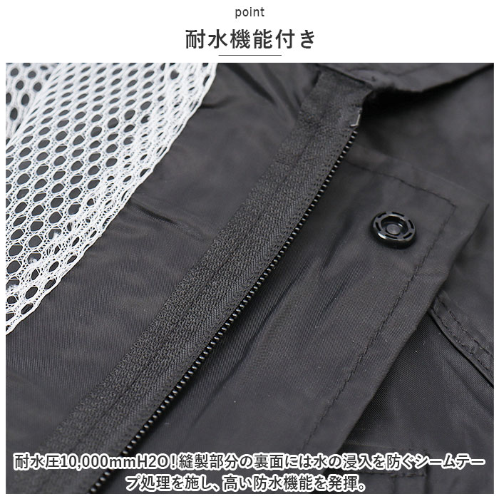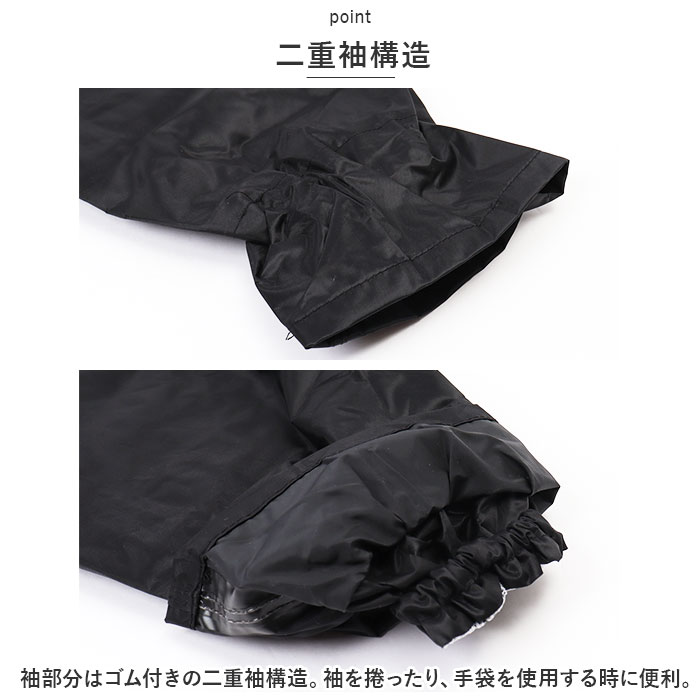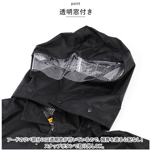 | 商品説明 | 雨の日の屋外や水場での作業に!働く人ためにつくった「かっぱです。」が発売。【耐水機能付き】耐水圧10,000mmH2O!縫製部分の裏面には水の浸入を防ぐシームテープ処理を施し、高い防水機能を発揮。【メッシュ仕様】裏地はムレやべたつきを防ぎ、サラッとした着心地のメッシュ仕様で快適な着心地。《ジャケット》【雨の浸入を防止】フロントはファスナー&スナップボタンの前立て。裾には絞り紐付きで、雨をシャットアウト!【二重袖構造】袖部分はゴム付きの二重袖構造。袖を捲ったり、手袋を使用する時に便利。【透明窓付き】フードのツバ部分には透明窓が付いているので、視界を遮る心配なし!スナップボタンで取り外しOK。【ポケット付き】フラップ付きの胸ポケットはカギやペンなど入れても落としにくく安心。【リフレクター付き】背面には視認性を高めてくれるリフレクター付き。《パンツ》【ストレスフリー設計】締めつけ感のないウエストは優しくフィットし、ストレスフリーな着用感。【ユニセックスデザイン】ユニセックスで使えるシンプルなデザイン。屋外での作業はもちろん通勤や通学、アウトドアシーンなど様々なシーンで活躍! |
