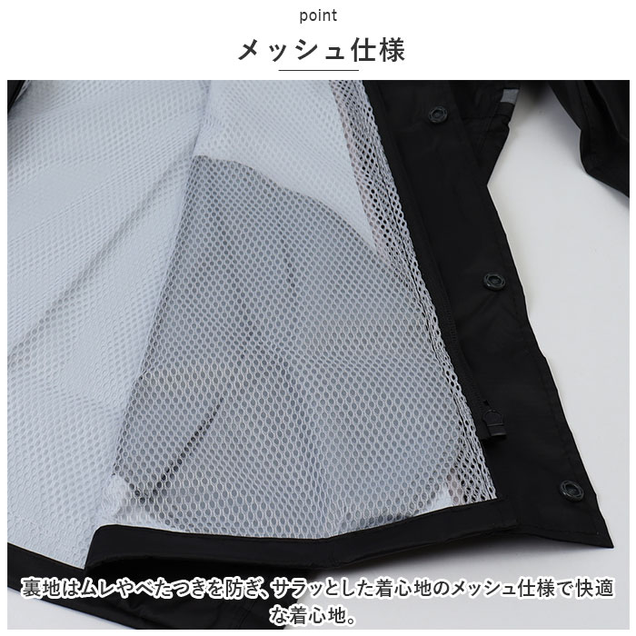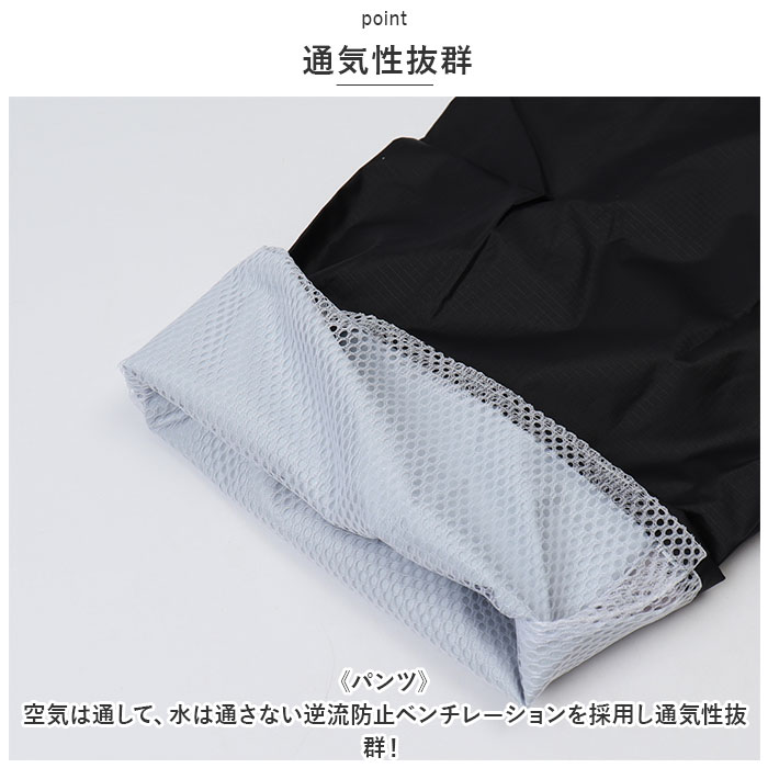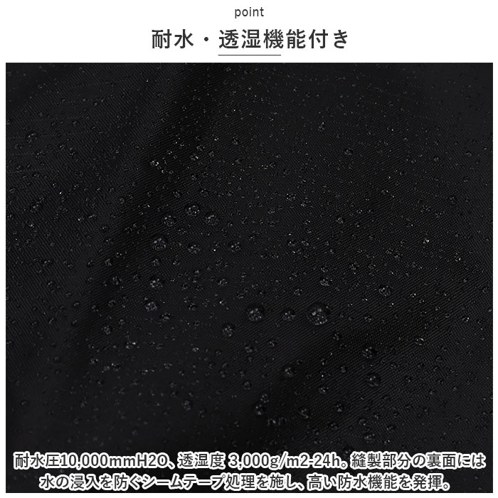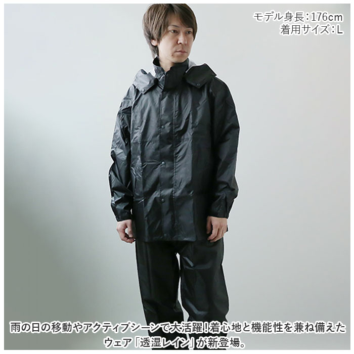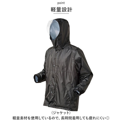 | 商品説明 | 雨の日の移動やアクティブシーンで大活躍!着心地と機能性を兼ね備えたウェア「透湿レイン」が新登場。【耐水・透湿機能付き】耐水圧10,000mmH2O、透湿度 3,000g/m2-24h。縫製部分の裏面には水の浸入を防ぐシームテープ処理を施し、高い防水機能を発揮。【丈夫な生地】従来のポリエステル生地より強度に優れたリップストップ生地を使用しているので、ほつれや破れに強く耐久性も◎【メッシュ仕様】裏地はムレやべたつきを防ぎ、サラッとした着心地のメッシュ仕様で快適な着心地。【軽量設計】軽量素材を使用しているので、長時間着用しても疲れにくい◎《ジャケット》【雨の浸入を防止】フロントはファスナー&スナップボタンの前立て。袖部分は面ファスナーベルト付きで、雨をシャットアウト!【透明窓付き】フードのツバ部分には透明窓が付いているので、視界を遮る心配なし!スナップボタンで取り外しOK。【ポケット付き】両サイドのフラップ付きのポケットはカギなど入れても落としにくく安心。【リフレクター付き】背面には視認性を高めてくれるリフレクター付き。【通気性抜群】空気は通して、水は通さない逆流防止ベンチレーションを採用し通気性抜群!《パンツ》【ストレスフリー設計】締めつけ感のないウエストゴム&ドローコード付きの内紐でフィット感を調節。【裾幅調節】裾幅を調節できるスナップボタン付き。【収納袋付き】使わない時はコンパクトにまとめられる便利な収納袋付き。【ユニセックスデザイン】ユニセックスで使えるシンプルなデザイン。通勤や通学、アウトドアシーンなど様々なシーンで活躍! |