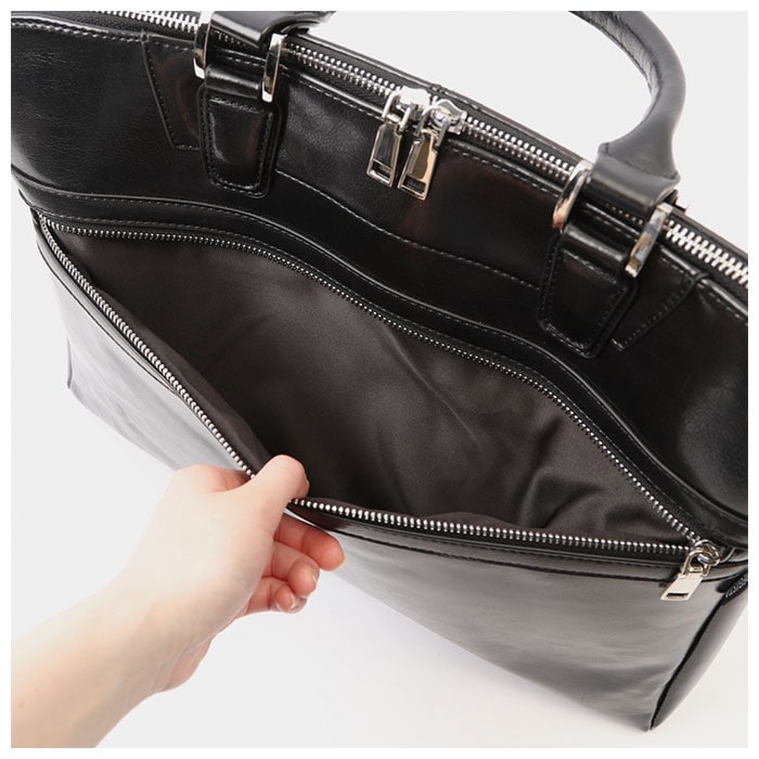 | 商品説明 | REGiSTAから、スマートなデザイン性と高級感を併せ持った「Split Leather Briefcase」が登場。厚みのある本革を分割(スプリット)し、削ぎ落とした革の裏側の部分を使ったスプリットレザー(牛床革)を採用。やや艶のある素材感が魅力。容量は約5リットル。スマートなデザインながら、A4ファイルがすっぽりと収まるサイズ感◎ラウンドファスナーで大きく開き、荷物の出し入れがスムーズ!内側にファスナーポケット×1、オープンポケット×1付き。中央にファスナーポケットになった間仕切りを配置することで、荷物の整理がしやすく機能的◎仕切りポケットは、ノートPCやタブレットの収納に便利なクッション仕様。フロントにはサッと取り出したい小物を入れておける、ファスナーポケットを配置。ハンドルは程良い太さで持ちやすい!シルバーの金具使いがアクセント◎ビジネスシーンにはもちろん、オフィスカジュアルなどキレイめスタイルとの相性もばっちり。 |