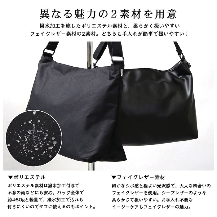 REGiSTA WATER REPELLENT & PU-LEATHER Shoulder Bag【BLACK】