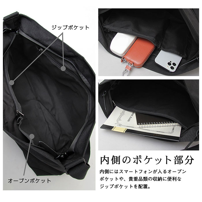 | 商品説明 | オールブラックでまとめたシンプルデザイン!REGiSTA(レジスタ)から、「WATER REPELLENTショルダーバッグ」が新登場。洗練された大人の漆黒コーデが叶う、個性的な2タイプの素材感が選べるカラーバリエーション。タフなポリエステル生地を使用した「BLACK」には、突然の雨でも安心なはっ水加工済み。水滴や汚れもサッと弾いて、お手入れカンタン。(※完全防水仕様ではありません。)滑らかな光沢感が大人の雰囲気を醸し出す「BLACK-A」にはリッチなPUフェイクレザーを贅沢に使用。身体に寄り添うような柔らかな風合いが持ち味。収納スペースは、B4サイズのスケッチブックが余裕で収まるワイド設計。程よいマチ幅で、ランチボックスや水筒、くるっと丸めた薄手のアウターもすっぽりと収納可能。内側にはスマホ専用のオープンポケット×1、長財布もすっぽり収まる大きめのファスナーポケットも2つ配置し、バッグの中で迷子になりがちな小物類がすっきり。ダブルファスナーで大きく開くバッグ開口部には、水濡れに強い止水ファスナーを採用することで、外出先やアウトドアでもよりアクティブな印象に。コットン生地で幅広にデザインされたショルダーベルトは自分サイズに調整可能。装飾を削ぎ落したスタイリッシュな外観が、大人カジュアルからモード系スタイリングまで、様々なファッションに自在にフィット! |