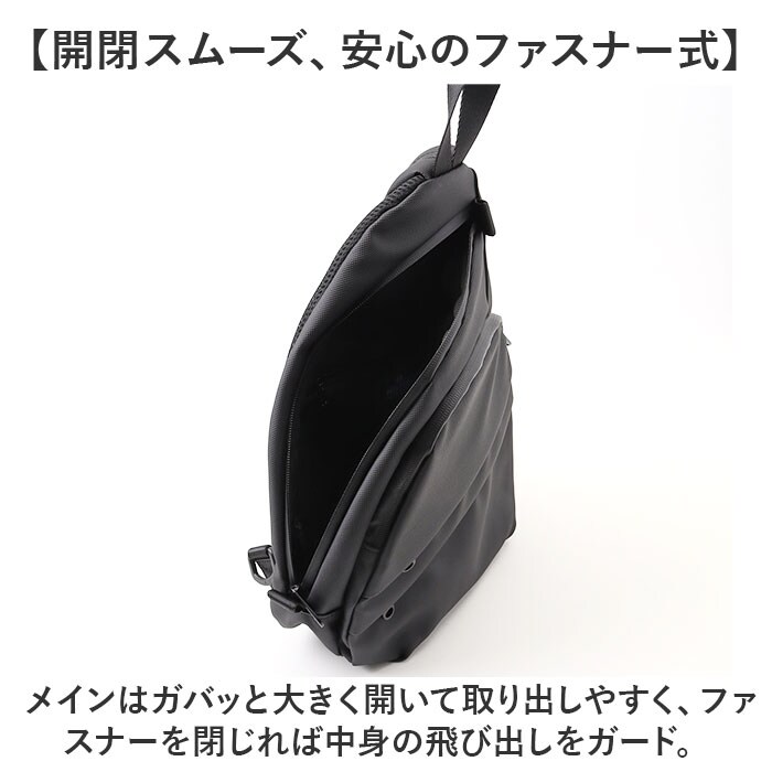 | 商品説明 | 【お出かけの相棒にぴったり】アクティブに動けて使い勝手も抜群。「REGiSTA ターポリン スリングバッグ」。【耐久性&撥水性に優れたターポリン】表面は防水仕様のポリエステル製、マットなターポリン生地。急な雨や水濡れも安心。(※1)完全防水ではありません。【水が入りにくい止水ファスナー】外側の各ファスナーは、水の侵入を防ぐ止水仕様。雨の中での外移動が多い日にも最適。【抜群のフィット感で移動もラクラク】ショルダー下部と本体をフックで繋げ、左右付け替えも自在。ボディラインに優しく馴染む♪(※2)ショルダーにクッション材入りです。【長時間の移動でも快適な背負い心地】バッグ背面に厚みのあるクッション材を入れ、荷物が当たるのを軽減。ムレにくいメッシュ仕様。【開閉スムーズ、安心のファスナー式】メインはガバッと大きく開いて取り出しやすく、ファスナーを閉じれば中身の飛び出しをガード。【B5対応ですっきりひとまとめ】B5が縦向きに。マチも程よく設け、500mlペットボトルなどが入る容量約6.5L。【サクッと取り出せて迷子知らず】内側にポケットを1つ配置。細々した物も、バッグの中で探す手間が不要。【A5がすっぽり、フロントスペース】フロントに、薄マチでA5対応の収納スペースを設けた2層式。長財布などもサッと出し入れ◎(※3)ダブルファスナー仕様です。【2つのフロント斜めポケット】斜めのファスナーが付いたポケットが2つ。上部のポケットは、フロントスペースと直結。(※4)フロントスペースと直結したポケットは、中身に合わせてフロントスペースと使い分け可能です。【ディテールにもこだわりをプラス】各ファスナーの引手は、ブランドロゴを入れたオリジナルパーツ。開閉しやすい大きめサイズ。【お好みで選べる2タイプをご用意】糸の織り目のような生地目が特徴のパターンと、クセのないスタンダードなスムース。【飽きのこないシンプルデザイン】無駄な装飾を省いた、スタイリッシュな仕上がり。様々なコーディネートに素敵にマッチ。 |