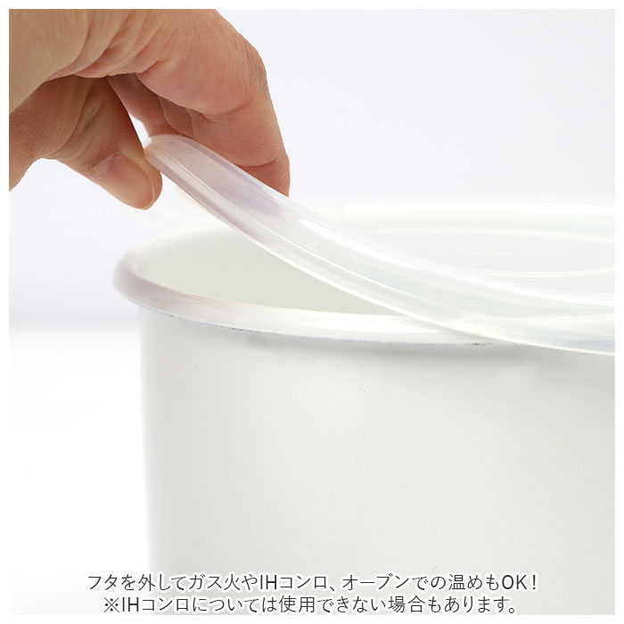 | 商品説明 | 保存容器としてはもちろん、そのまま加熱もできる!「野田琺瑯 持ち手付ストッカー 丸型L」が登場。満水容量約1.5Lの丸型ストッカー。清潔感ある真っ白なカラー。日本の職人さんが手作業で仕上げた、日本製の琺瑯容器。耐酸性、保温性、耐熱性に優れており、ニオイがつきにくく色移りしにくい!雑菌が繁殖しにくいのも嬉しいポイント◎フタ付きなので、そのまま冷蔵庫に保存可能。スープや味噌汁のストックに便利!フタを外してガス火やIHコンロ、オーブンでの温めもOK!(※IHコンロについては使用できない場合もあります。)出し入れに便利な取っ手付き。砂糖や塩などの調味料入れとしても活躍! |