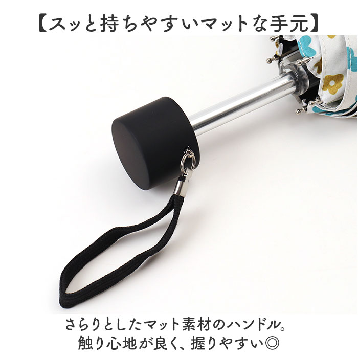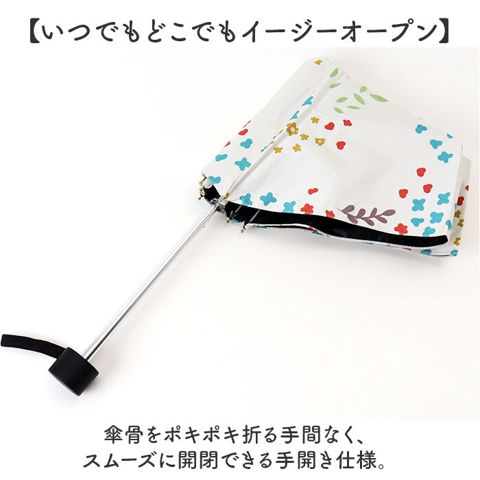 | 商品説明 | 【晴れの日も雨の日も心強い味方】お出かけの時に持っていれば安心!見た目も可愛らしい「晴雨兼用 折りたたみ傘」。【強い日差しに負けない機能性】UVカット率100%、遮光率99.99%!、裏面にPUコーティングを施し紫外線をガード。【雨でも使えて、お天気の急変に対応】傘生地にはっ水加工済み。突然の雨からもガードできて安心の晴雨兼用傘。【いつでもどこでもイージーオープン】傘骨をポキポキ折る手間なく、スムーズに開閉できる手開き仕様。【安心・安全のセーフガード機能】爪や指を挟むのを防止するカバーを装備。開閉時のケガを防ぎ、ネイルを施した爪も保護。【しなやかで丈夫なグラスファイバー】親骨の先端は、弾力性のある素材。折れにくいのに、使い心地は軽やか。【サクッと留められるボタン式バンド】傘生地を留めるバンドは、バチンっと留めやすいスナップボタン式。【スッと持ちやすいマットな手元】さらりとしたマット素材のハンドル。触り心地が良く、握りやすい◎【スマートにバッグインOK】傘生地と同じデザインの収納袋付き。サッとまとめて、かさばらずに持ち歩き。【楽しくお出かけできるデザイン】心もほっこり、気分の上がる愛らしいデザイン。お気に入りを選んで相棒に☆ |