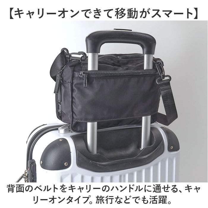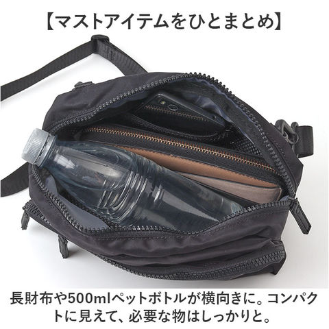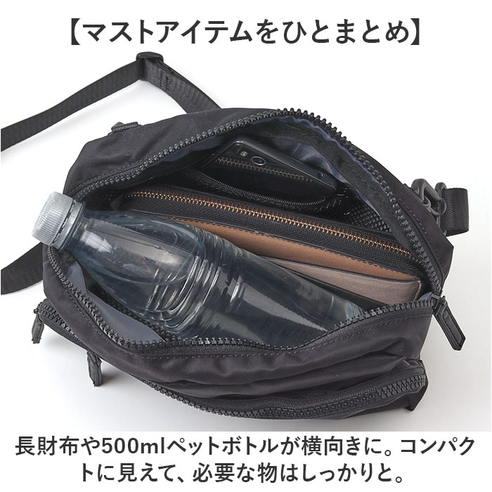 | 商品説明 | 【色んなシーンで頼りになる相棒】小さくても機能的◎ポケットを多く装備した「connie 多ポケットショルダーバッグ」。【両手が空いてストレスフリー】長さ調節可能なショルダーを取り付け、肩掛けや斜め掛け。両手を自由に使えて、アクティブに!【キャリーオンできて移動がスマート】背面のベルトをキャリーのハンドルに通せる、キャリーオンタイプ。旅行などでも活躍。【ガバっと開くダブルファスナー】左右どちらからもオープン。中身を確認しやすく、出し入れスムーズ。【マストアイテムをひとまとめ】長財布や500mlペットボトルが横向きに。コンパクトに見えて、必要な物はしっかりと。【充実のポケット仕様で迷子知らず】内側・外側に複数のポケットを配置。バッグの中で、小物を探す手間が不要。【軽やかな使い心地でヘビロテ確定】体に負担がかかりにくい軽量設計。表面は耐久性の高いナイロン仕上げで、ラフに使えるバッグ。【カジュアルなユニセックスデザイン】性別や年代問わず使える、シンプルなデザイン。シェアや色違い揃えもおすすめ。【ポケット仕様】内側:ファスナー式メッシュポケット×1、メッシュポケット×2、オープンポケット×1前面:ファスナーポケット×2背面:ファスナーポケット×1(キャリーオンベルト部分) |