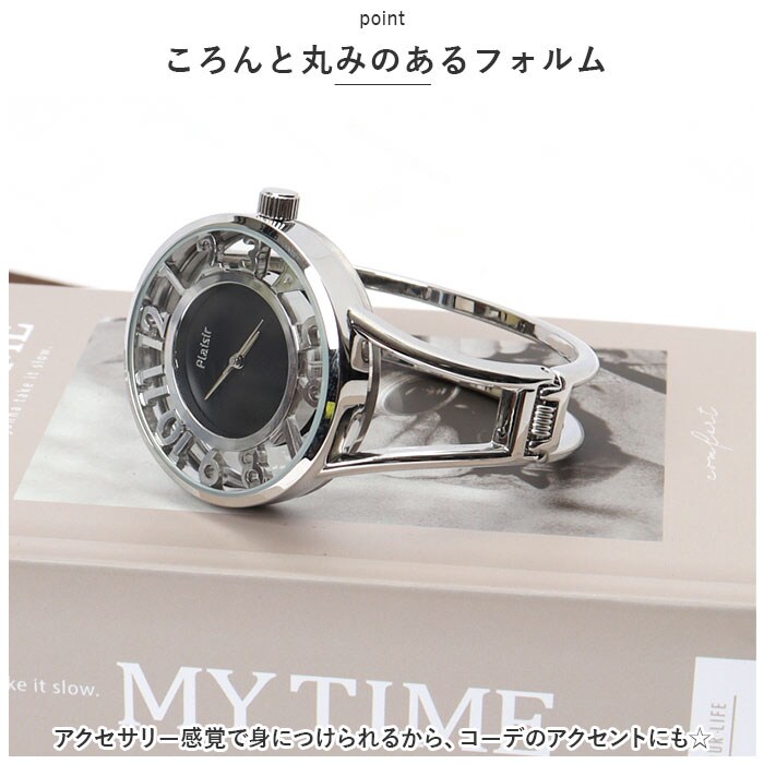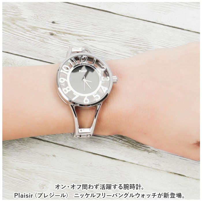 Plaisir プレジール NTK-247 ニッケルフリーバングルウォッチ【Silver/ブラック】