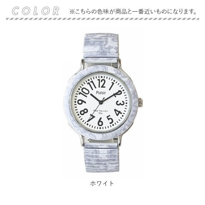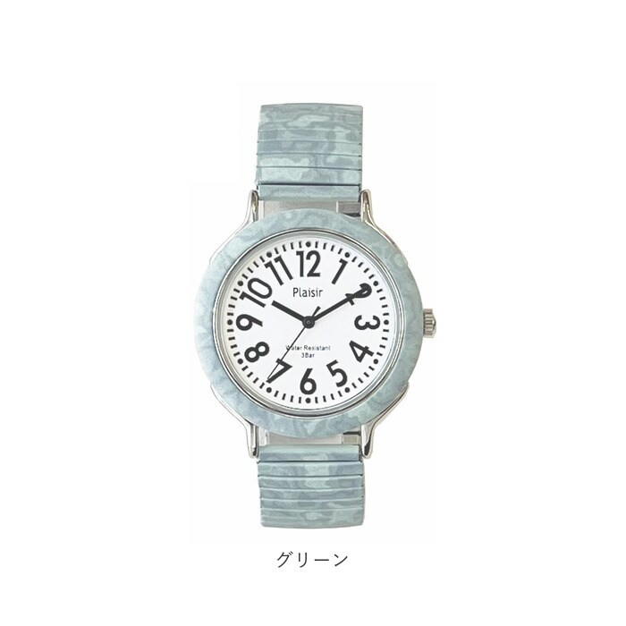 | 商品説明 | 【アクセサリー感覚でおしゃれに】ブレスレットのような着用感♪「Plaisir ニッケルフリージャバラウォッチ」が新登場。【ワンタッチで簡単に着脱OK】ぐ~んと伸びるジャバラタイプで、付け外しがスムーズ。忙しい朝も一瞬で装着完了。【手軽に使える日常生活防水タイプ】うれしい3気圧防水(日常生活防水)仕様。洗顔時・小雨などに一時的に濡れる程度なら大丈夫。(※1)水仕事中、プールやお風呂場などでのご使用は故障の原因となるため、お控えください。【ニッケルフリーでお肌が敏感な方に】ニッケルをほぼ含まず、お肌に優しいのもポイント。安心して使えるアイテム◎(※2)すべての方に金属アレルギーが出ないことを保証するものではありません。【ひと目で確認◎シンプルな文字盤】コントラストが高く、時刻確認がラクラク。文字盤ケース横のつまみで、時刻調節が可能。【安心の日本製ムーブメント】ムーブメントは高い性能を誇る日本製。1秒ごとに時を刻むステップ秒針。【自分用にもギフトにもおすすめ】ニュアンスカラーの水彩テイスト♪手元をさりげなく彩るウォッチは、贈り物にも喜ばれそう! |