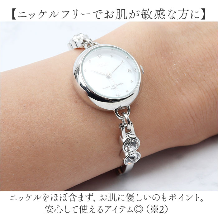 | 素材 | [ケース]合金ニッケルフリーメッキ [バングル]合金ニッケルフリーメッキ [裏蓋]ステンレス |