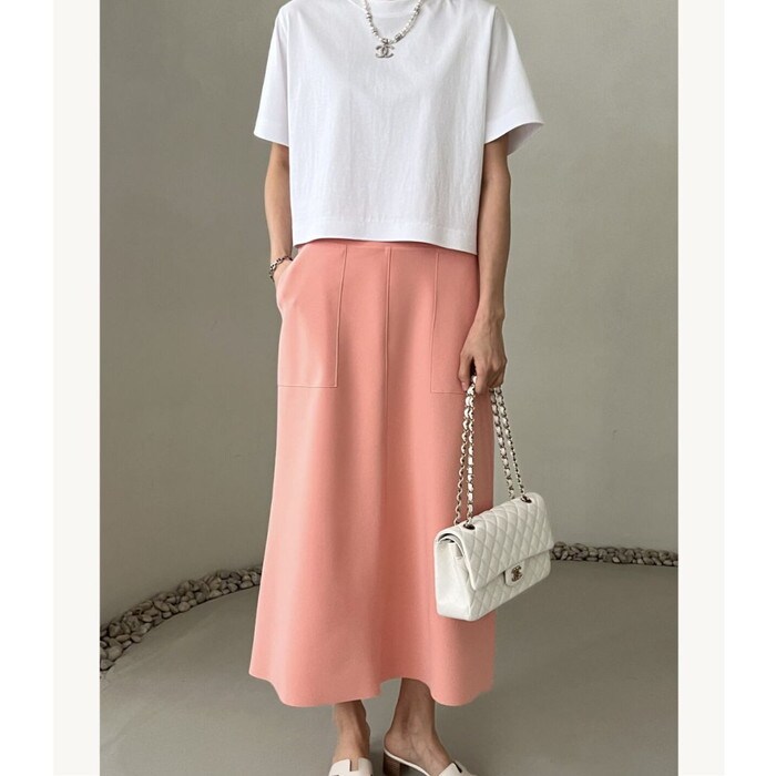ポケットカラースカート【coralpink】
