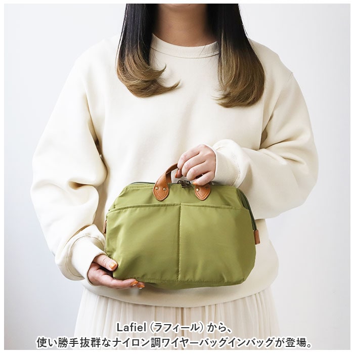 Lafiel ラフィール ナイロン調ワイヤーバッグインバッグ【グリーン】