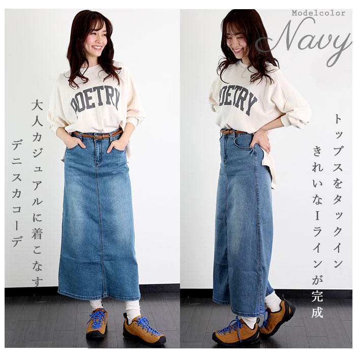 デニムロングスカート【ネイビー】【Sサイズ】