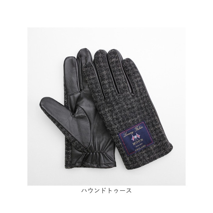 | 商品説明 | トラッドなMOON生地とレザーのコンビグローブ。様々なスタイルに合わせやすいベーシックな柄パターン。掌親指、人差し指に導電革を使用し、 スマホ・タッチパネル操作に便利。裏地はあたたかな起毛を使用。 |