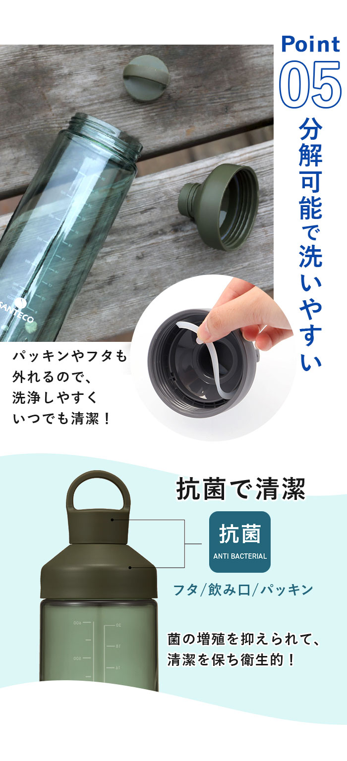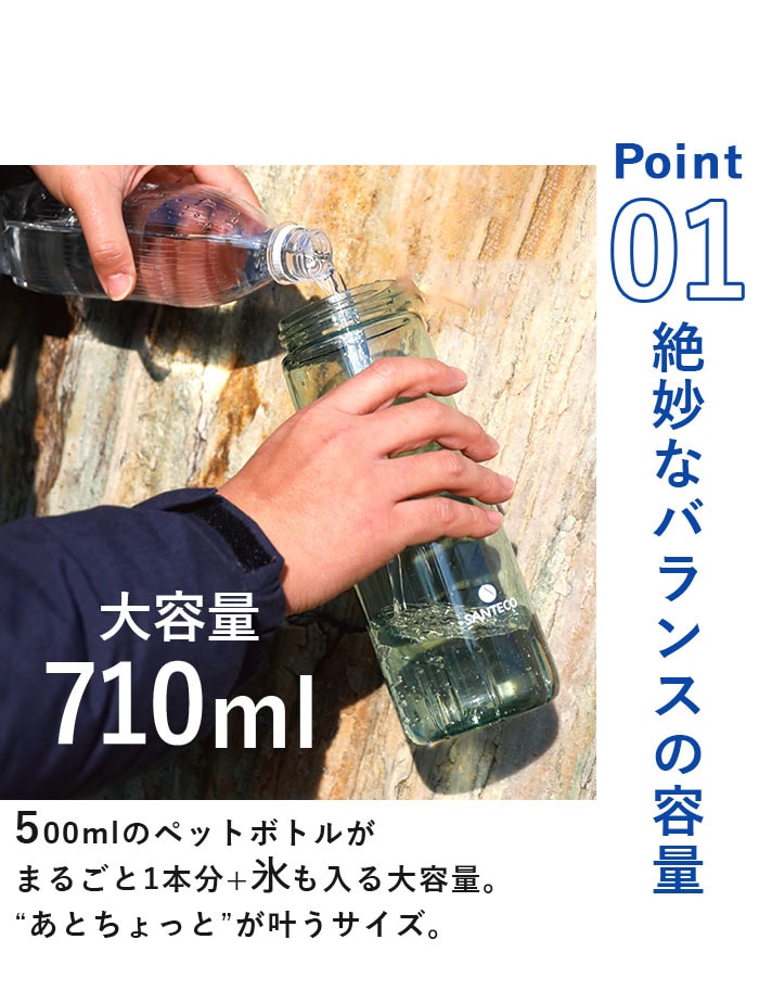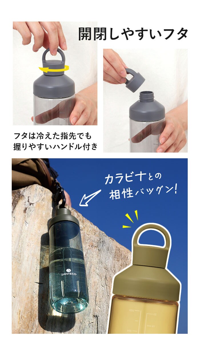 | 商品説明 | 登山家のために作られた、軽量&丈夫なオーシャンビバレッジボトル(710ml)が登場。人体への影響が指摘されるビスフェノールAなどの化学物質を含まない、安全性の高い素材「トライタン」を採用した冷水専用ボトル。デザイン性にこだわったクリア仕様♪粉末のスポーツドリンクを作る際に便利な、目盛り付き。プロテインや粉末タイプのグリーンスムージーを作る時のシェイカーとして使ってもOK。500mlペットボトルの飲料がラクラク入る容量710ml。山頂で食べるカップラーメン用の水入れに最適。飲み口は水分補給しやすい約2.5cmの細口設計。ボトルの口径は約6cmで、飲み物の移し替えがラクラク。フタ、飲み口、パッキンは抗菌加工を施しているからいつも清潔。パーツは取り外しできて、お手入れがカンタン。フタは登山中の冷たくなった指先でも開けやすいハンドル付き。お手持ちのカラビナに掛けることができて、携帯性もバツグン◎ |