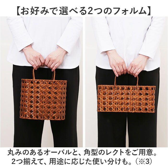 | 商品説明 | 【見た目にも機能性にもこだわりを】収納&バッグとしても使える「UTILE Octa バッグバスケット」選べる2タイプ。【天然素材のようなナチュラル感】ポリプロピレンとポリエチレンを使って手編み。生活感が出にくく置いておくだけでサマになる!【水に強く、濡れても大丈夫】天然素材のようにカビや虫、湿気を気にする心配なし。水拭きや水洗いできてお手入れ簡単。(※1)濡れた状態で放置しないでください。【型崩れしにくく丈夫なつくり】枠組みにアイアン素材を使用し、フォルムをキープ。長く愛用してもへたりにくい◎【出しっぱなしでも絵になる風合い】ラタンの皮の風合いを、自然に表現した八つ編みバスケット。懐かしさを感じる雰囲気が魅力☆【散らかりがちな小物をすっきり整頓】日用品や雑貨の収納におすすめ。スキンケアアイテムなど、高さのある物もIN。【持ち運びにも便利なハンドル付き】サッと手に取れて移動もラクラク。自立型でお買い物バッグ、普段使いのバッグとしても活躍。(※2)バッグ使いする際は、お手持ちの巾着などを入れると中身が見えずに安全です。【お好みで選べる2つのフォルム】丸みのあるオーバルと、角型のレクトをご用意。2つ揃えて、用途に応じた使い分けも。(※3)デザインにより、サイズが異なります。【どんな空間にも素敵にマッチ】飽きが来ず、空間に馴染むデザイン♪お気に入りのアイテムで、お家時間をより豊かに。 |