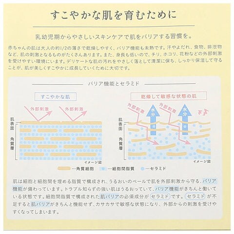 | 注意点 | 【対象年齢】0歳以上お取り扱いの際は、商品やパッケージなどに記載されている品質表示、アテンションタグ、ご使用上の注意事項などを必ずご確認下さい。本来の目的以外にはご使用にならないで下さい。肌に異常が生じていないかよく注意してご使用ください。肌に合わないときはご使用をおやめください。カメラやモニターの性質により、画像と実物の色の違いがある場合がございますのでご理解願います。 |